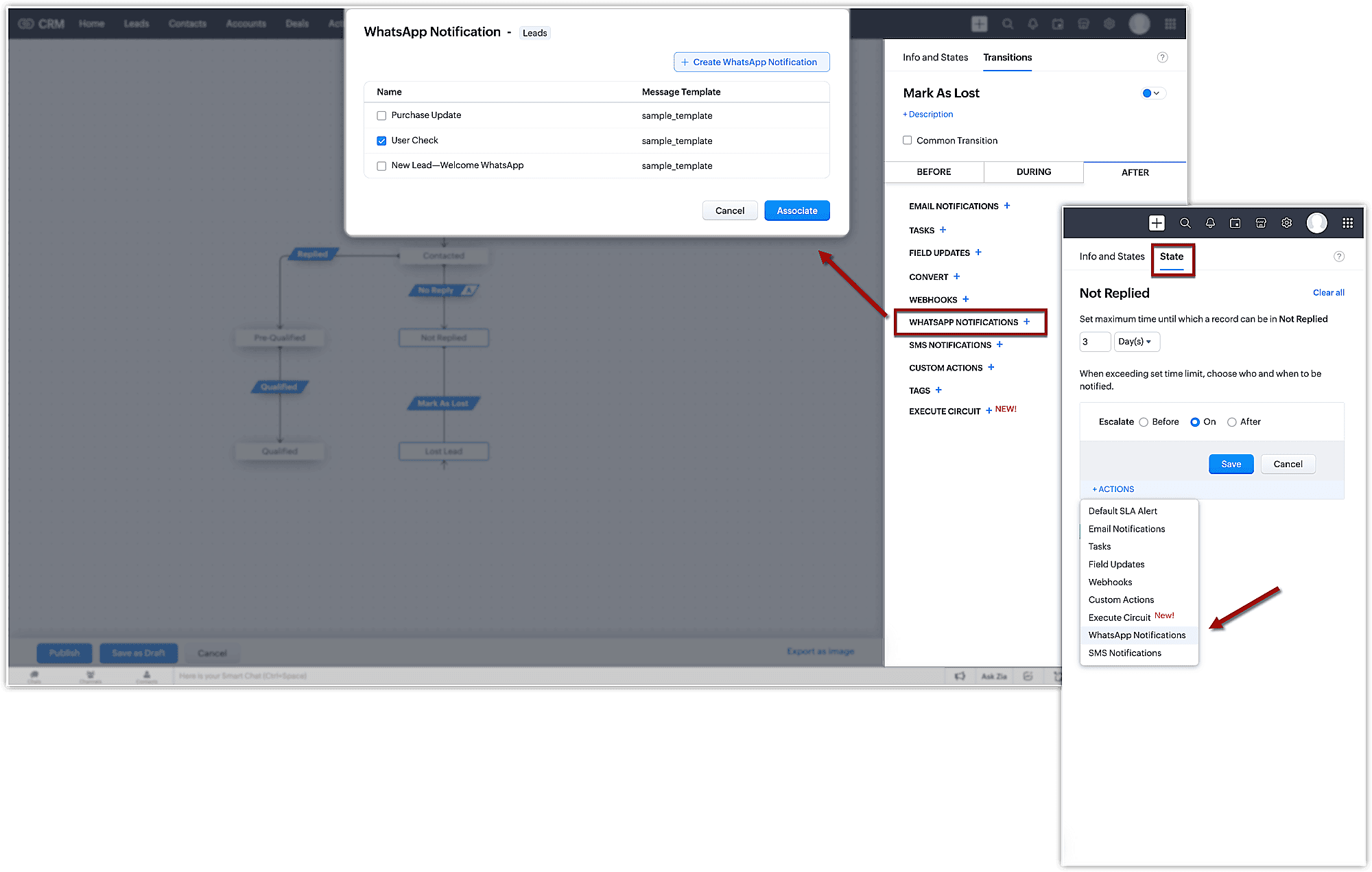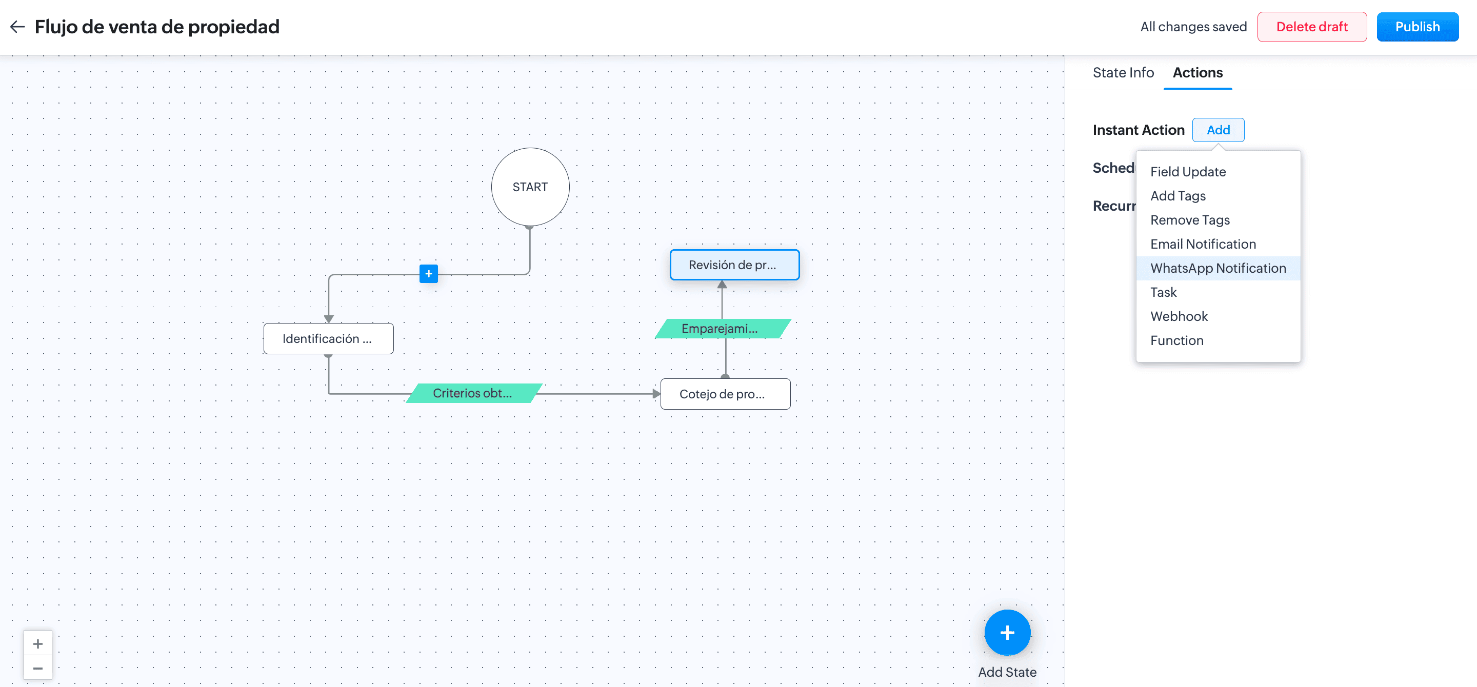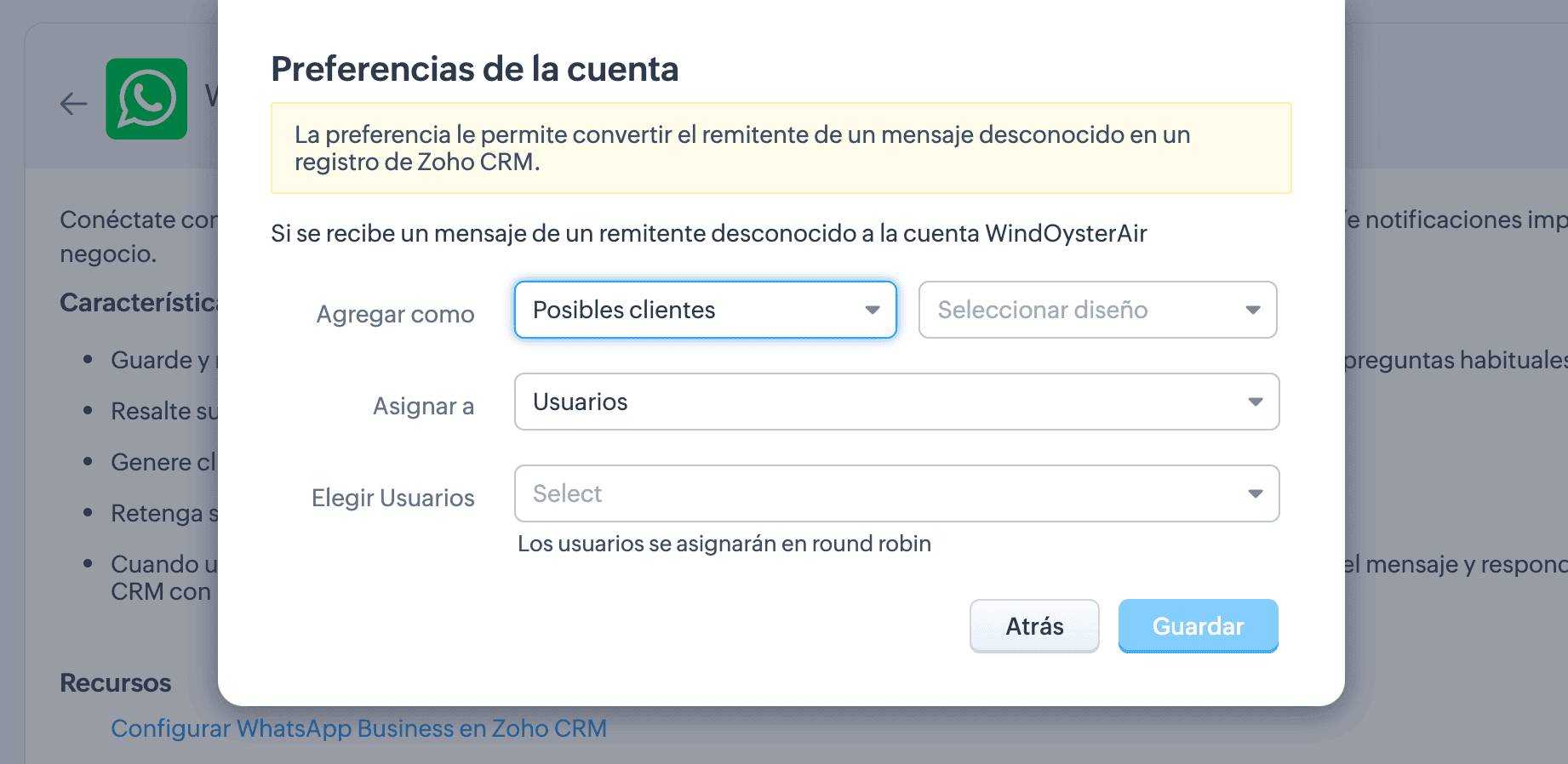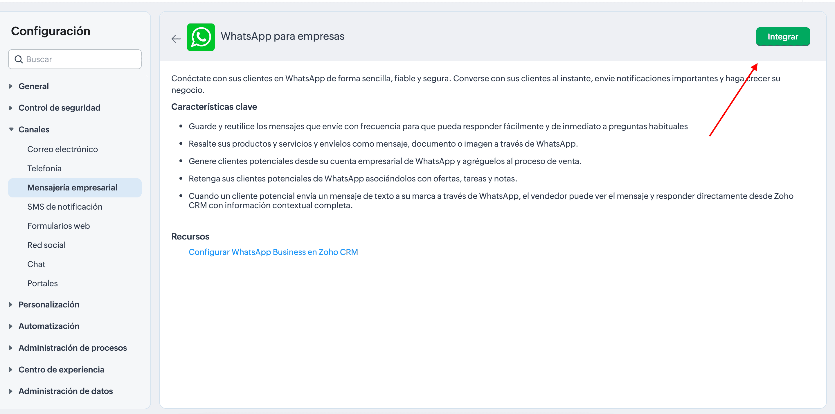 Para ayudar a las empresas a interactuar con sus clientes a través de mensajes de negocios desde la cuenta de CRM, así como para mantener un registro de estas interacciones, Zoho CRM proporciona una integración fluida con WhatsApp. Solo un administrador puede iniciar esta integración.