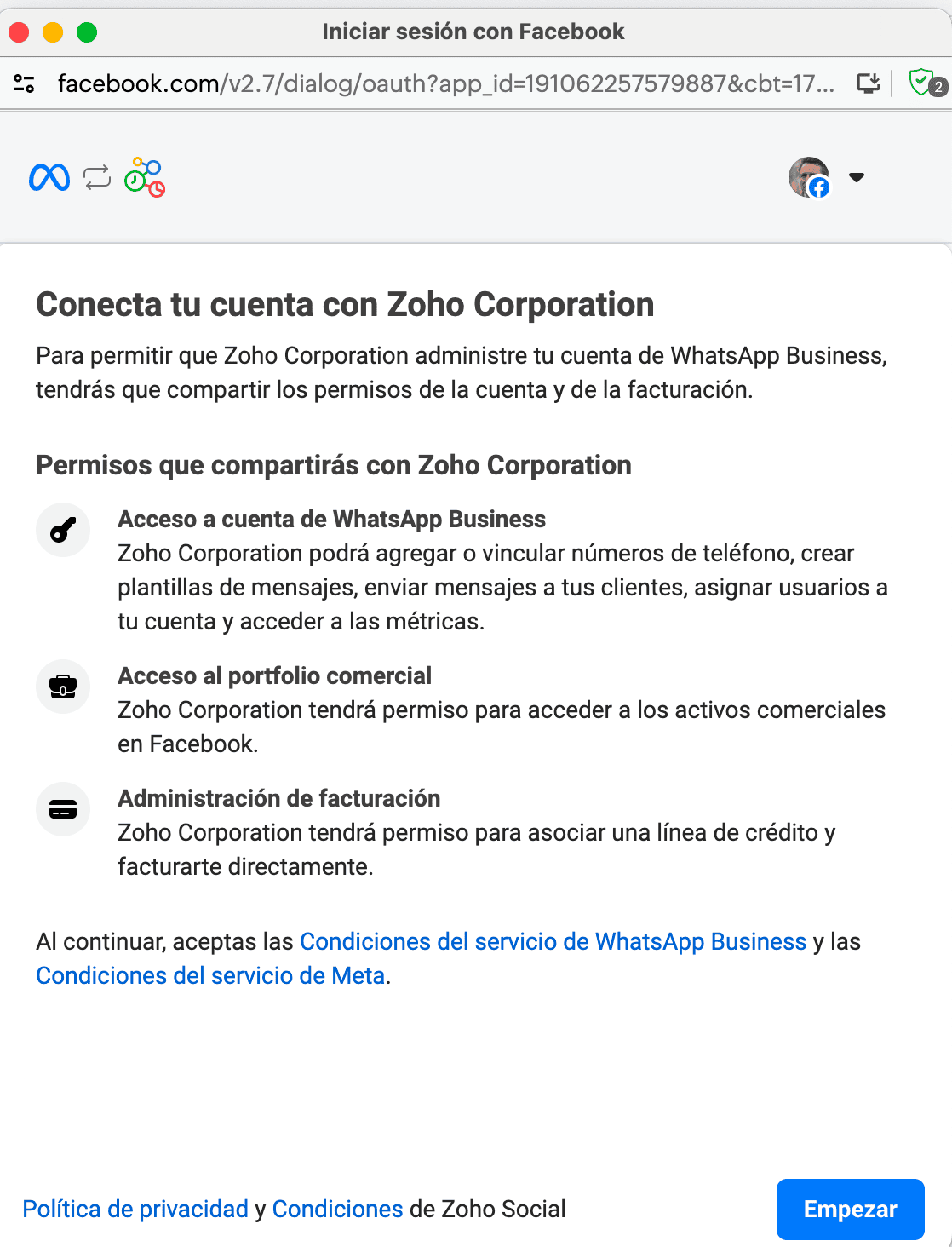 Antes de poder integrar WhatsApp Business en su Zoho CRM, debe cumplir los siguientes requisitos previos: