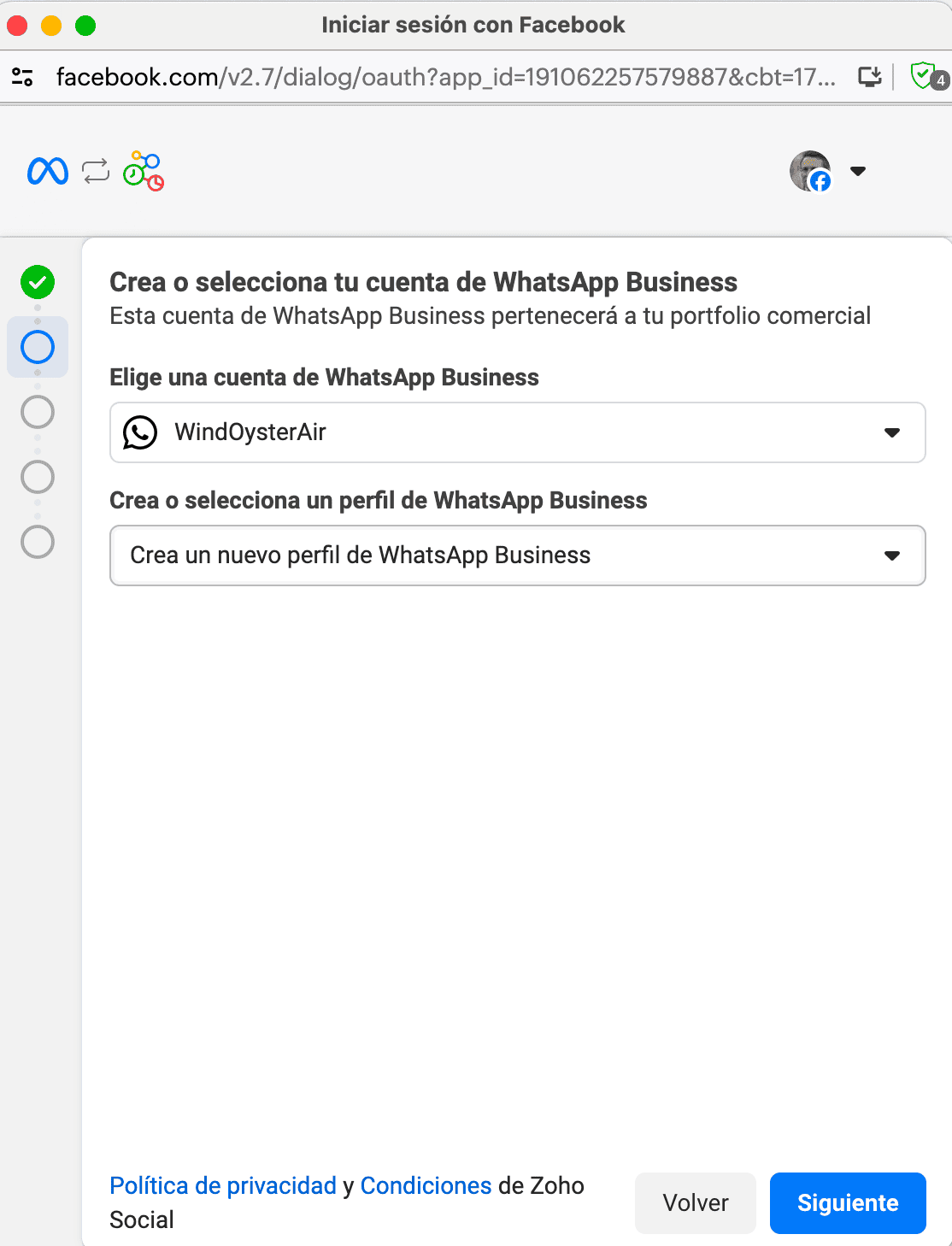Creé un nuevo perfil de WhatsApp Business o seleccione un perfil existente de las opciones existentes.