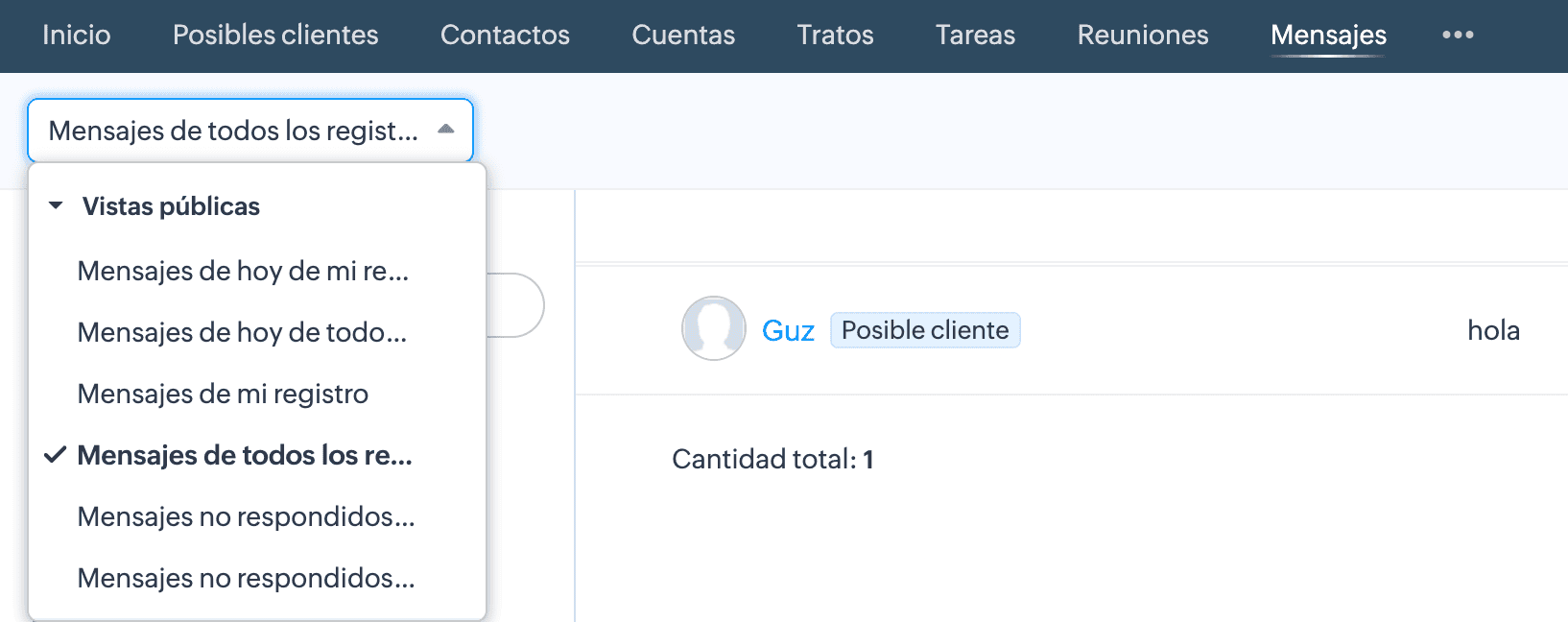 Los usuarios también pueden establecer una vista bajo el módulo para ver los mensajes que están sin responder, todos los mensajes enviados hoy, todos los mensajes sin responder, etc.