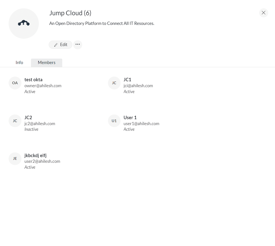 Una vez hecho, navega a la pestaña de Miembros en JumpCloud en el lado de Zoho One para ver todos los usuarios sincronizados con Zoho One.