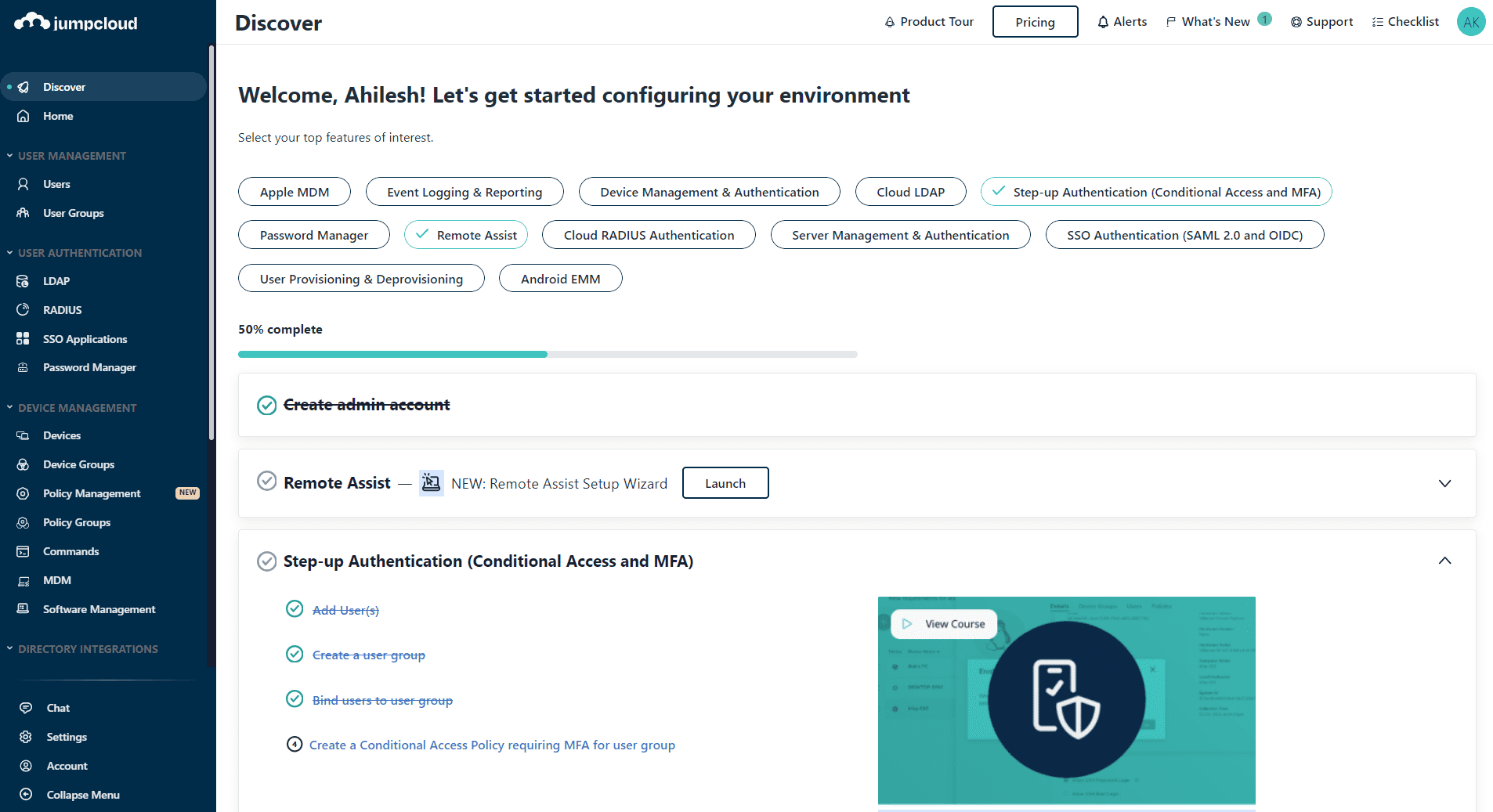 Inicia sesión en el Portal de Administración de JumpCloud.
