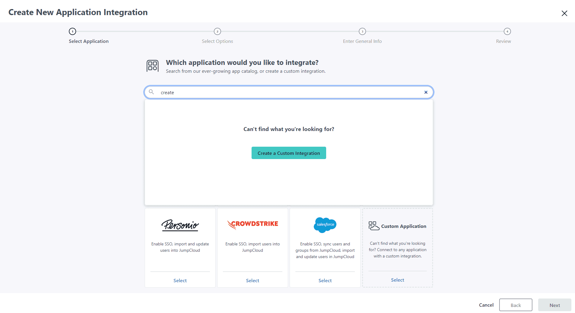 Introduce Crear una Integración Personalizada en la barra de Búsqueda y haz clic en el CTA.