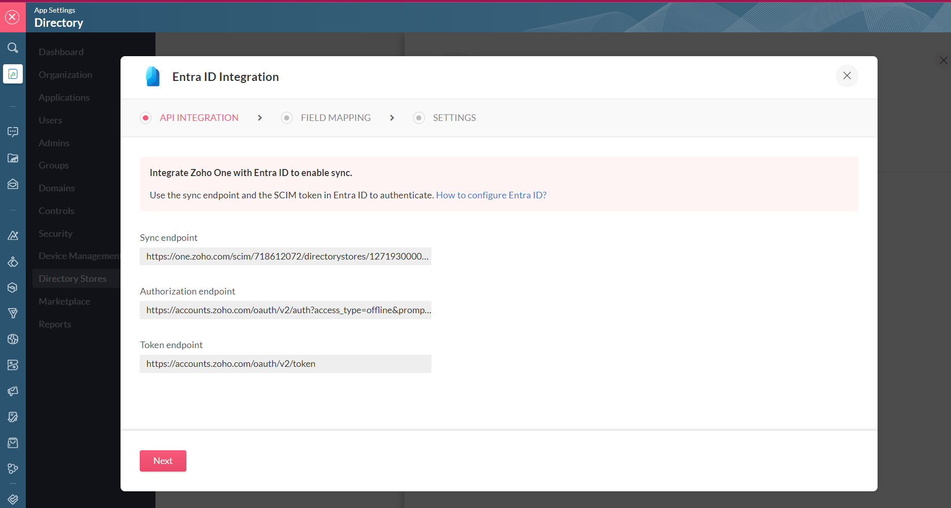 Nota: Las URL del Endpoint de Autorización y del Endpoint de Token deben ser específicas del Centro de Datos (DC). Por lo tanto, si estás intentando agregar una cuenta de Zoho One en un Centro de Datos (DC) a una cuenta de Microsoft Entra ID en otro DC, debes cambiar el DC en la URL.