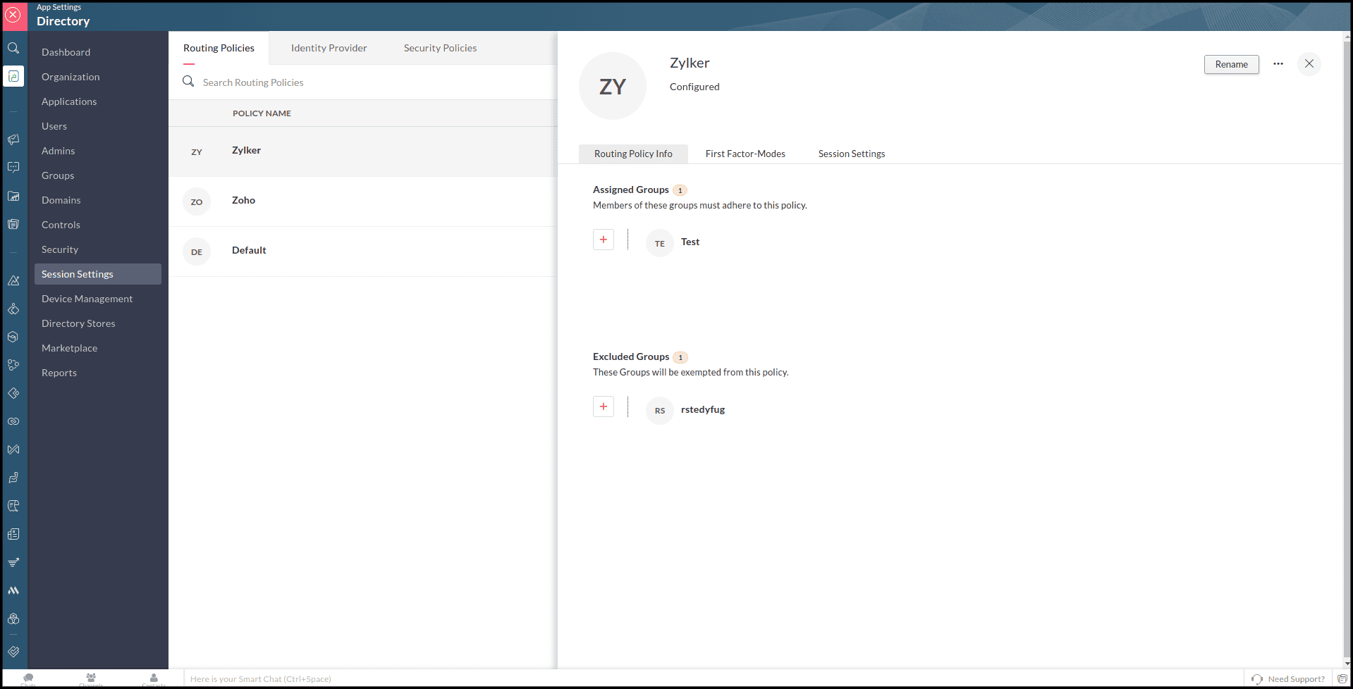 Requisitos previos Roles requeridos para realizar esta acción: Propietario de la organización Administrador de la organización Para aplicar una política de enrutamiento a un grupo: Inicia sesión en Zoho One. Haz clic en Directorio en el menú de la ...