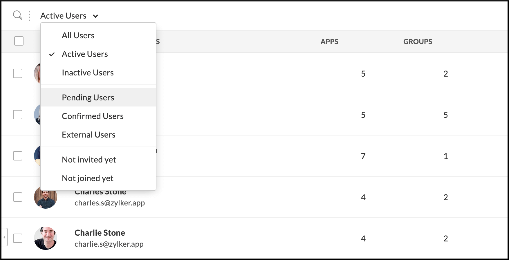 Eliminar es diferente de Desactivar, ya que eliminar un usuario es irreversible. Solo se pueden eliminar Usuarios Pendientes. Si deseas eliminar permanentemente al usuario de tu organización, contacta a support@zohoone.com. En la aplicación móvil: ...
