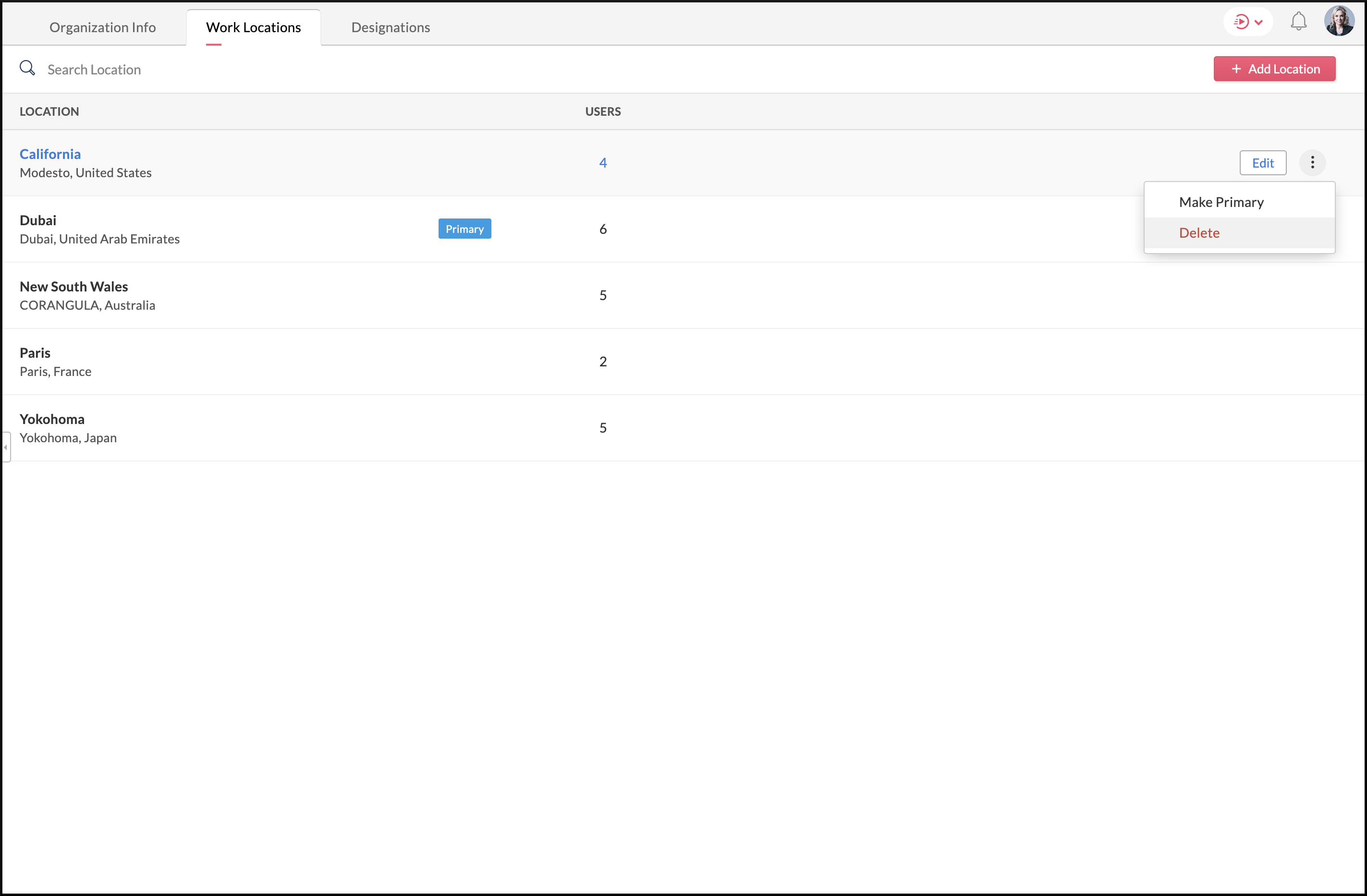 Los detalles de la Ubicación Principal se compartirán con las aplicaciones relevantes. Por ejemplo, si eliges usar Zoho Books, la ubicación principal se establecerá como la dirección de facturación predeterminada. Debido a su importancia, la ...