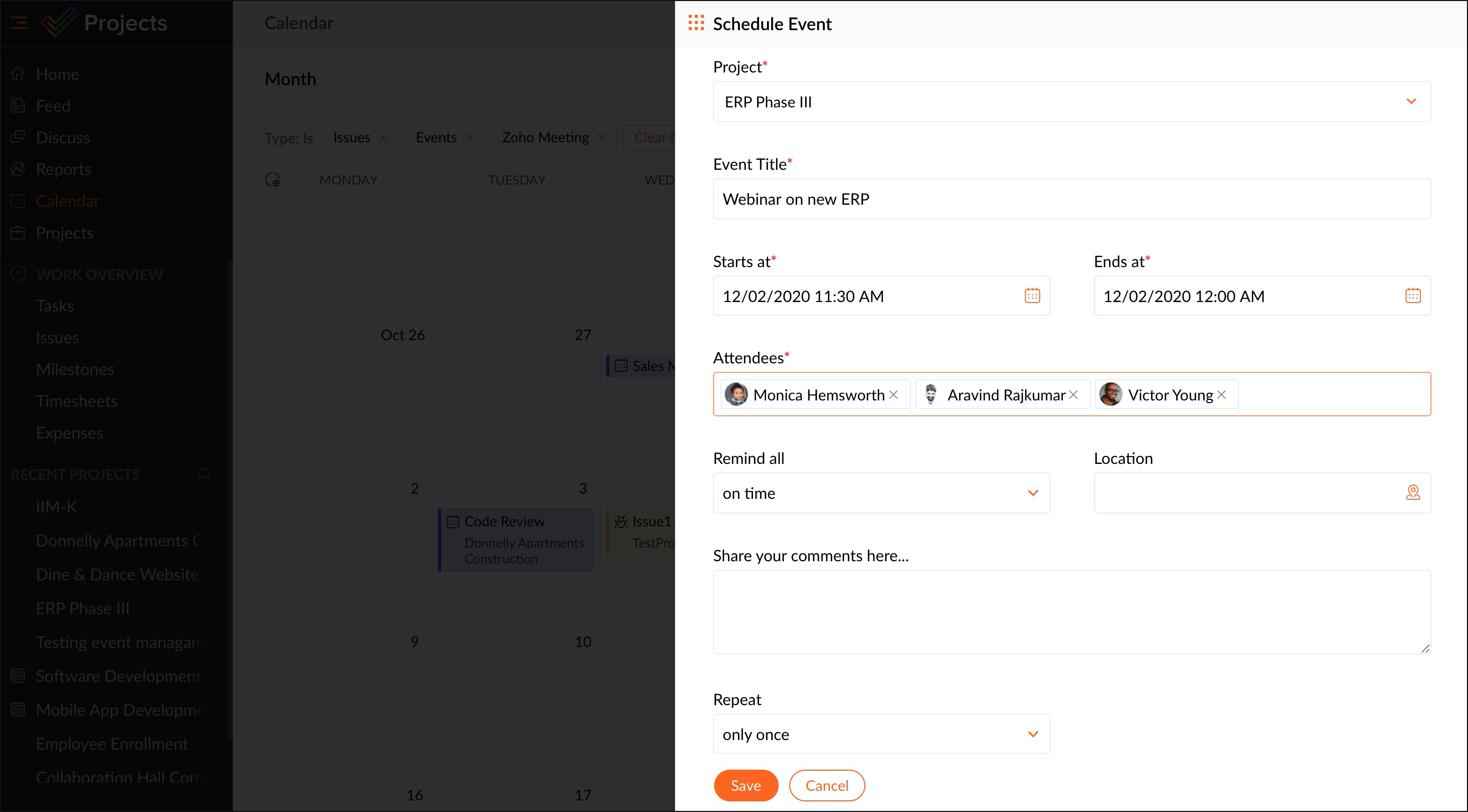 - Haga clic en Guardar para programar el evento en su proyecto.