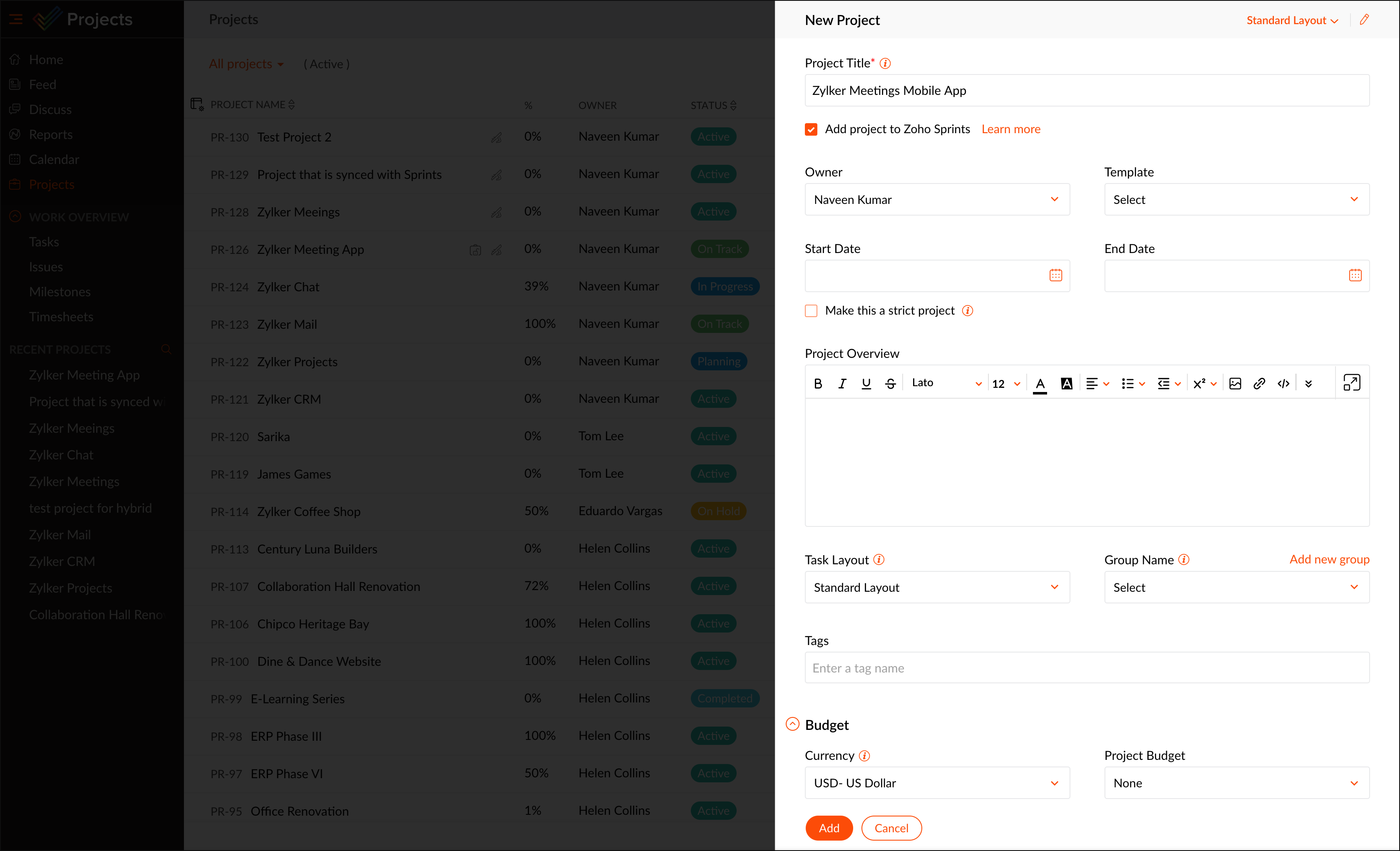 - Cuando edita un proyecto, la actualización del propietario del proyecto no se sincronizará con Zoho Sprints.