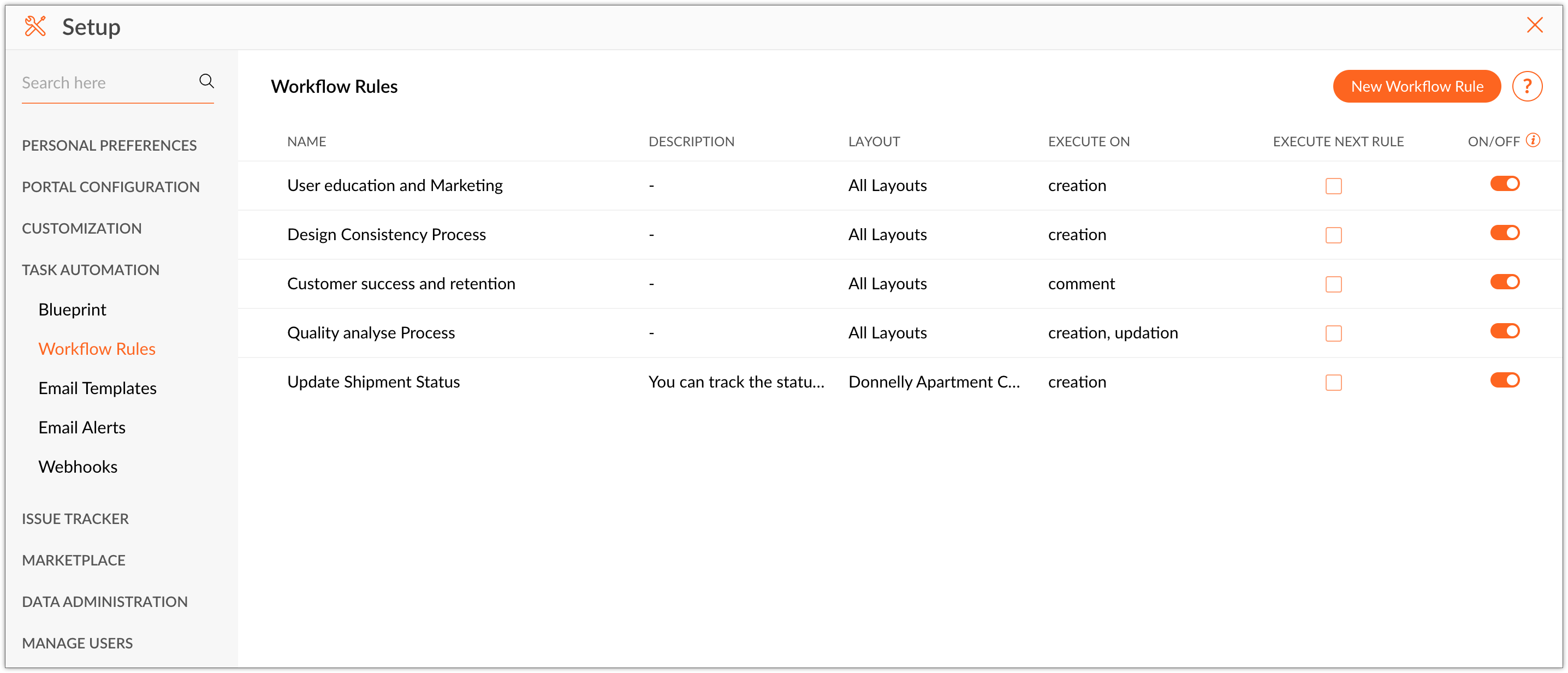 Las reglas de diseño en Zoho Project lo ayudan a personalizar el diseño de una tarea según los requisitos. Para crear una regla de diseño, debe crear una condición y una acción. Beneficios Quite los campos innecesarios para optimizar el diseño. ...