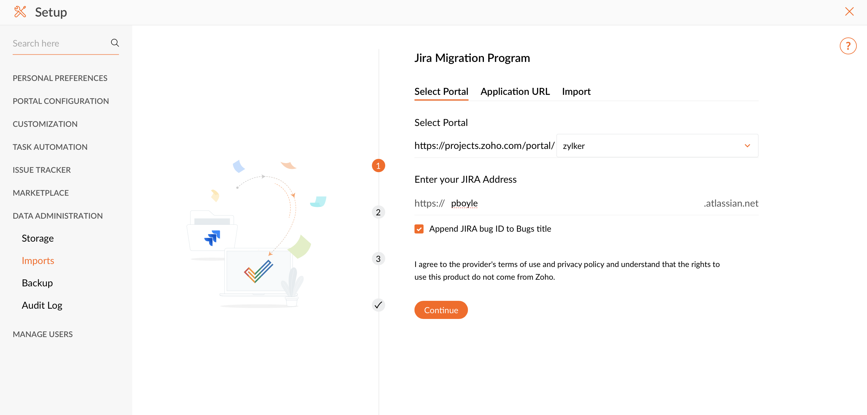 Gracias por considerar Zoho Projects. Si está listo para migrar sus datos desde JIRA Cloud a Zoho Projects, siga los pasos que se indican a continuación a fin de importar sus datos.