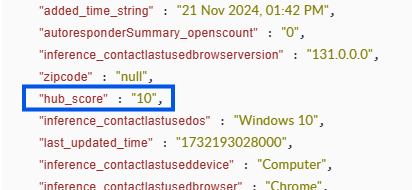 When I view the output for Fetch Leads I can see in the raw JSON that there is a field called hub_score but this is not shown in the Flow UI :