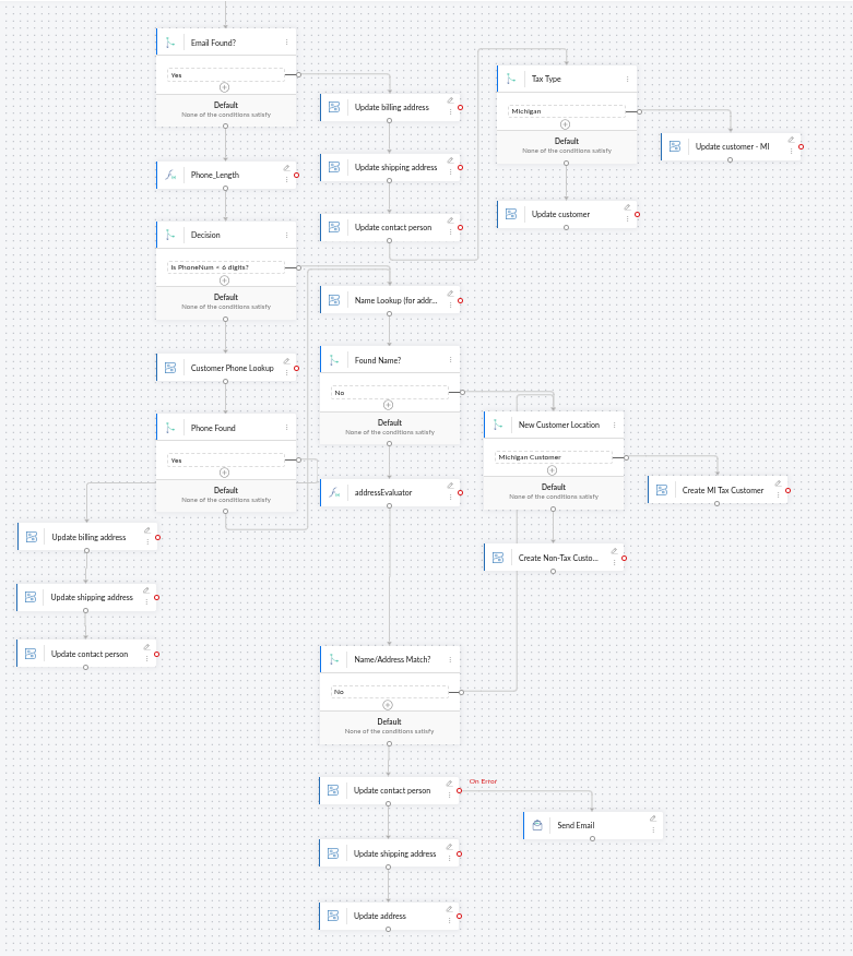 The UI for Flow is generally pretty good. However, when multiple decision trees are used, the layout can get pretty convoluted and hard-to-follow (see one of my Flows below): In these cases, even the auto-arrange fails to make this something that a normal