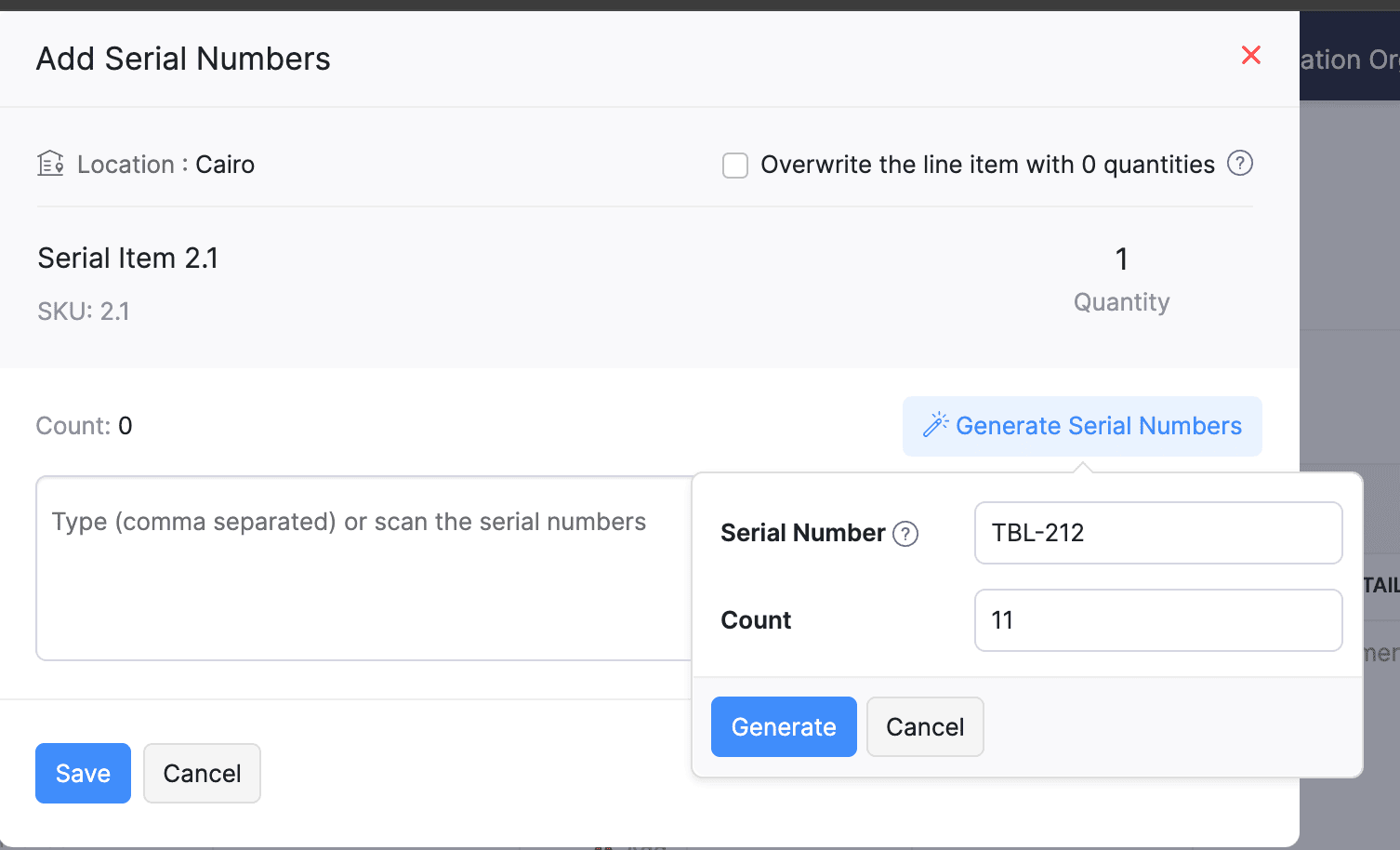 Introducing support serial number generation for inward transactions. You can set a starting serial number and specify the required count to ensure precise inventory tracking and save time.