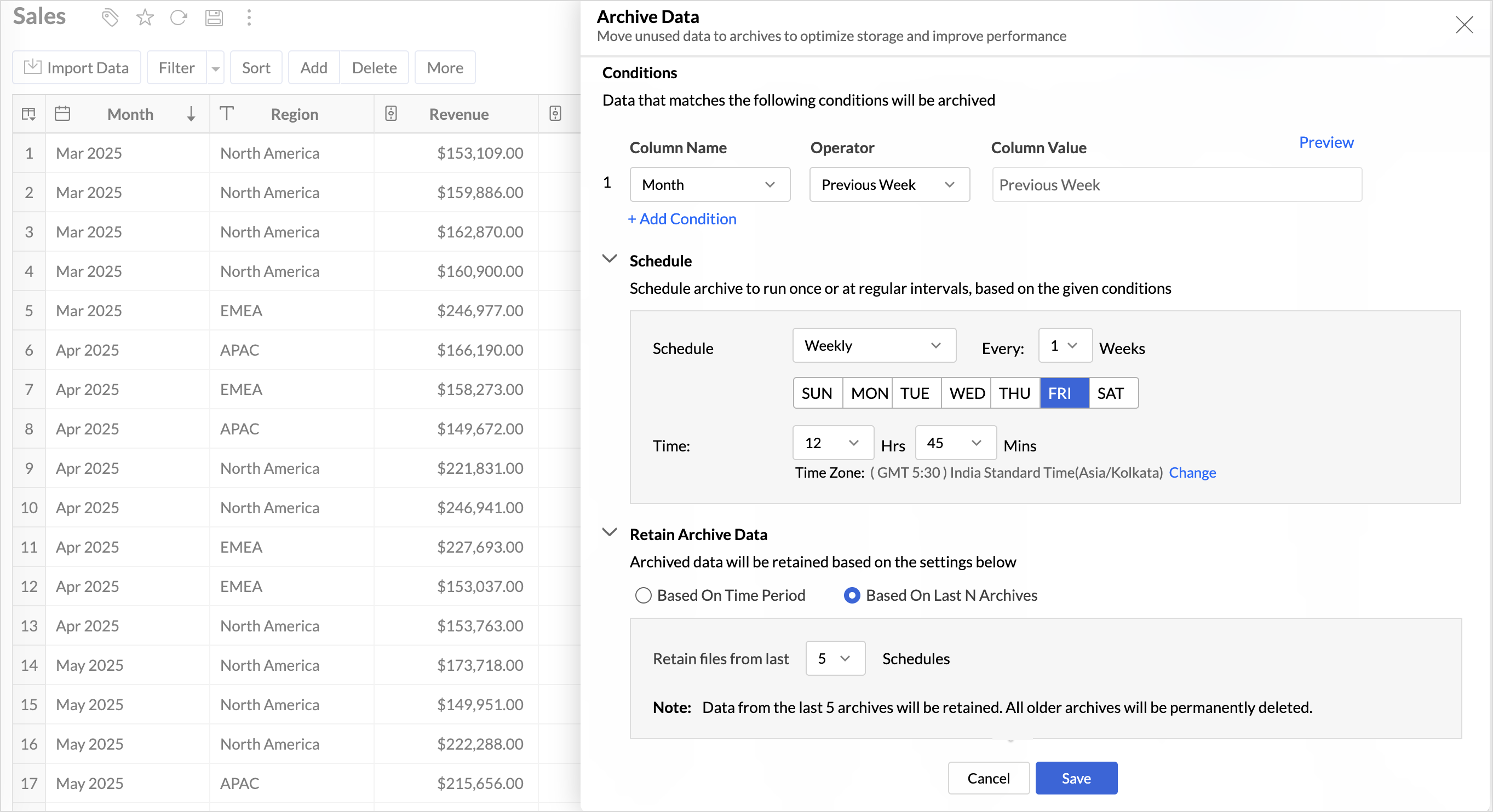 No more querying all records while generating reports! Analyze data faster and optimize workspace performance with Archive Data. Move older or less-frequently used records out of active tables, and store them securely.