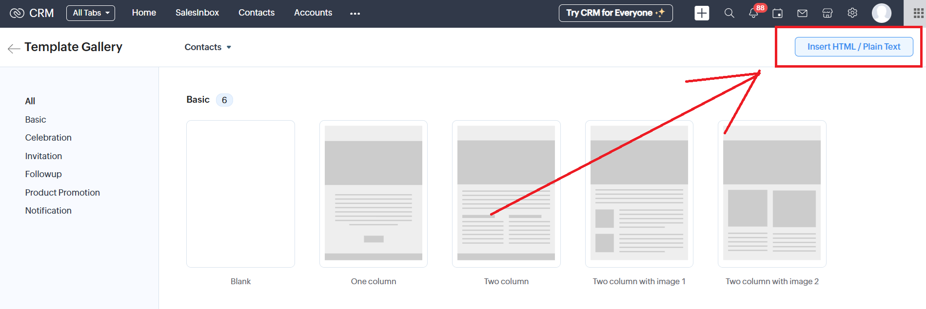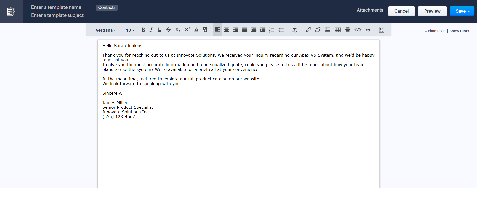 1. The template in the Zoho CRM editor:
