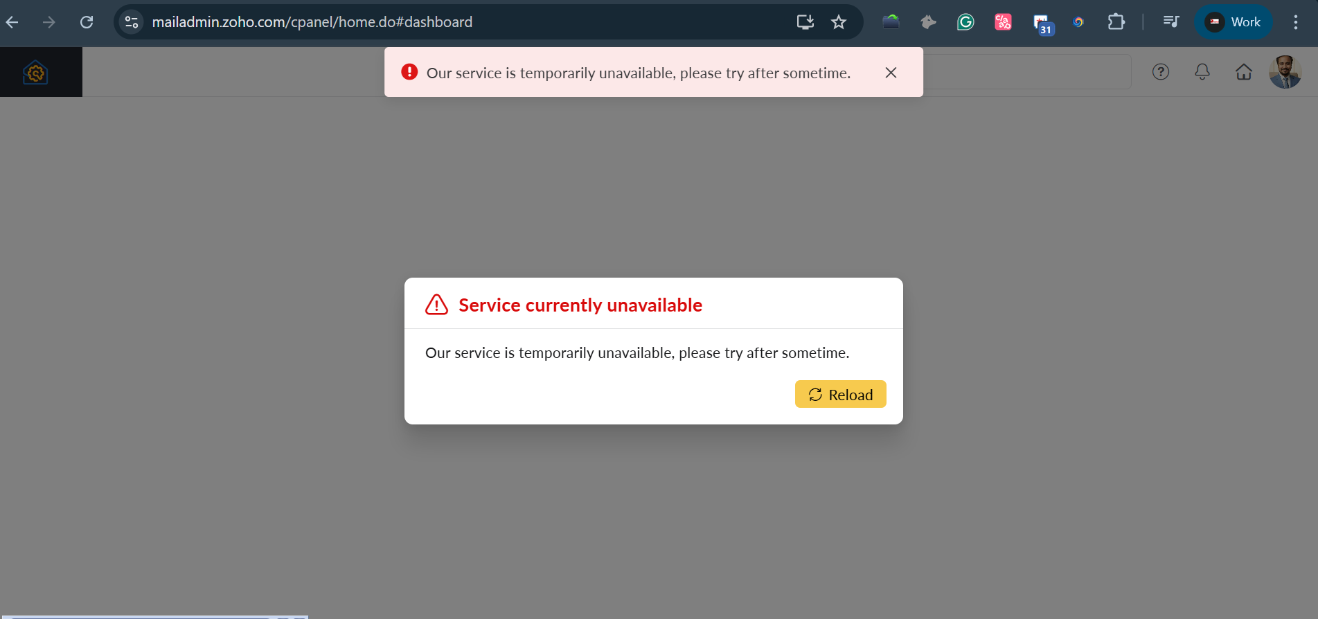• Zoho mail admin panel not opening