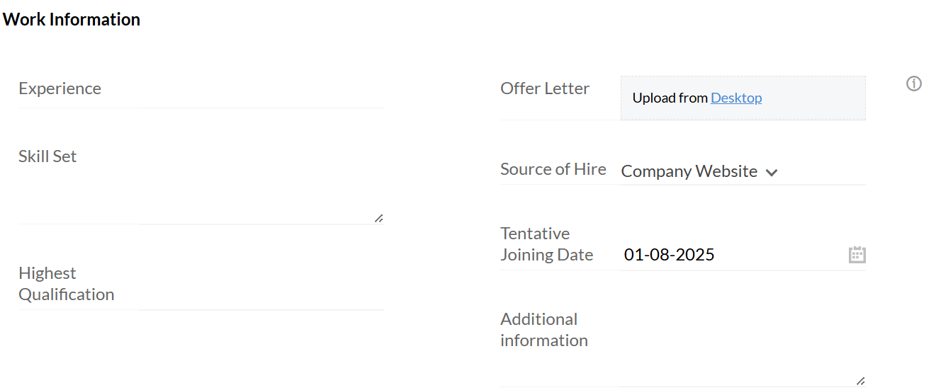 Zoho People > Onboarding > Candidate do not view all the data field on the Employee Onboarding
