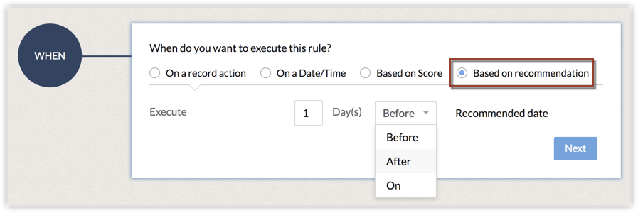 - Dans Quand voulez-vous exécuter la règle ? Sélectionnez En fonction des recommandations.