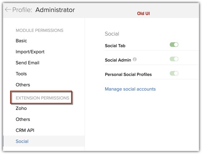 Auparavant, vous deviez gérer les autorisations sociales d'un utilisateur dans Configuration > utilisateurs et contrôle > contrôle de sécurité.