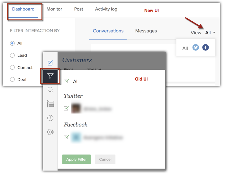 Auparavant, l'icône de filtre était affichée dans l'onglet social, où vous pouviez filtrer et afficher les interactions dans un réseau particulier.