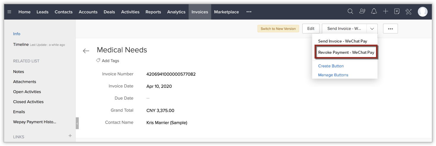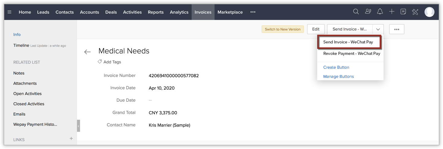 - Cliquez sur Envoyer la facture - WeChat Pay.
