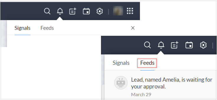 Par exemple, si vous avez commenté un flux qui concerne le changement de l'adresse e-mail d'un lead. Vous n'avez pas suivi ce lead, cependant en commentant le flux, vous suivez automatiquement l'enregistrement. Vous recevrez ainsi une notification lorsque cet enregistrement sera modifié. Il en va de même si vous êtes mentionné dans un commentaire par un autre utilisateur.