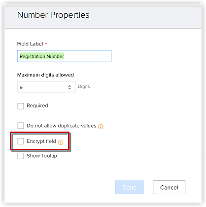 Les informations chiffrées ne sont stockées que dans le domaine crm.zoho.com. Utilisez les informations chiffrées dans d'autres domaines ou services tiers à votre seule discrétion.