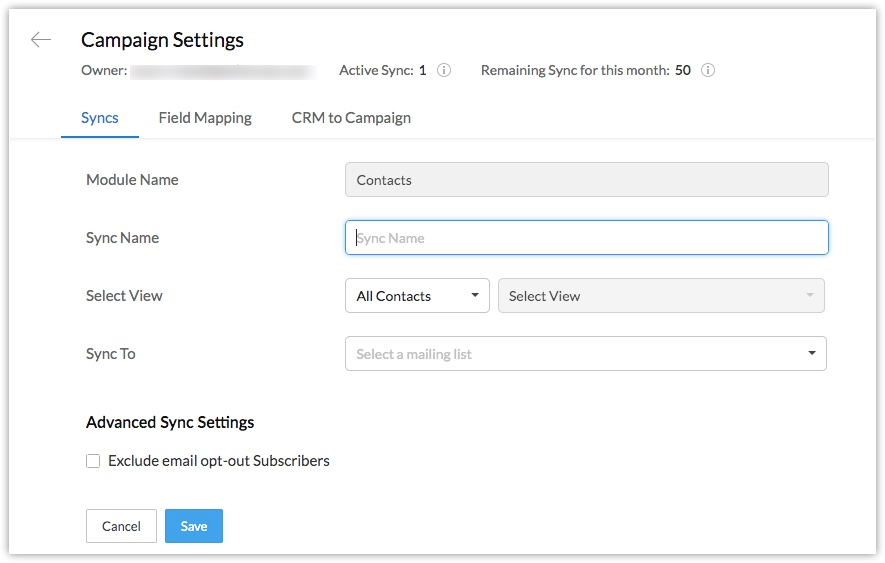 Étape 2. Synchroniser les affichages CRM avec la liste de diffusion de Zoho Campaigns