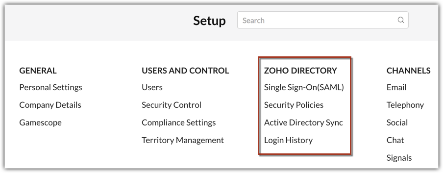 Vous pouvez accéder à Zoho Directory à partir de la page Configuration CRM.