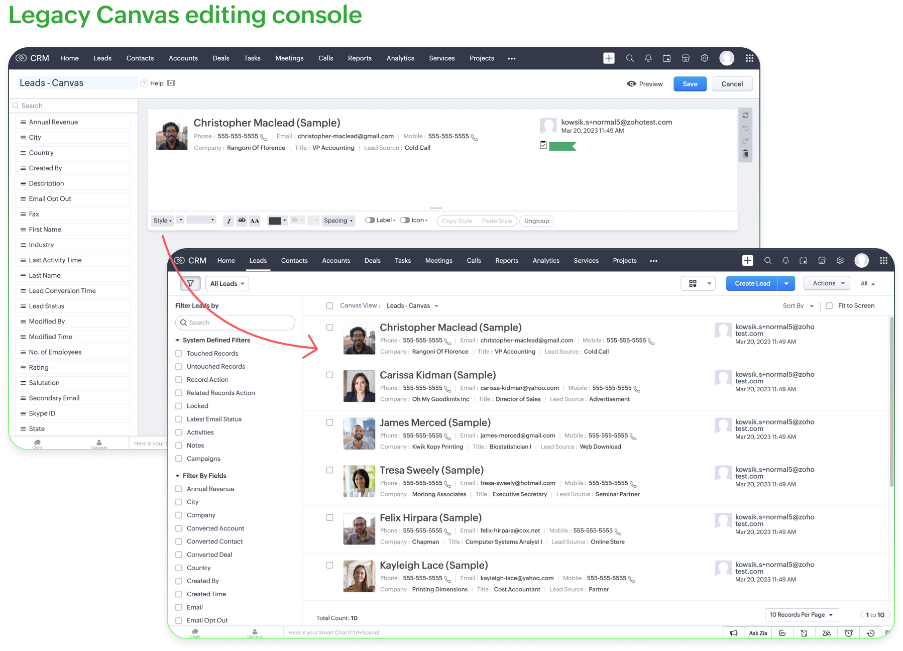 Canvas est le studio de conception de pointe de Zoho CRM et vous permet de créer et de présenter vos données de manière plus organisée. Il regorge d'éléments de conception sophistiqués, simples à visualiser et à utiliser.