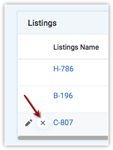 Pour dissocier un enregistrement de la liste associée, cliquez sur l'icône en forme de croix à côté de l'enregistrement.