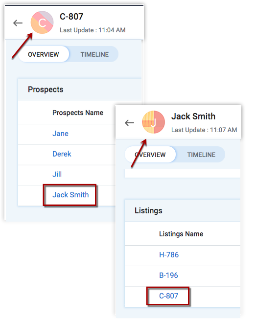 Chaque module principal contiendra la liste associée de l'autre module dans la page Détails de l'enregistrement respective.