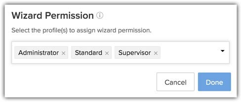 Vous pouvez sélectionner les profils qui doivent avoir accès à un assistant particulier. Notez toutefois que l'autorisation de disposition remplacera l'autorisation d'accès à l'assistant. En d'autres termes, si les commerciaux ont restreint l'accès à la disposition A, même s'ils ont l'autorisation d'accéder à l'assistant, ils ne pourront pas afficher la disposition. Par conséquent, vous devez vous assurer que les profils auxquels vous donnez accès aux assistants ont des autorisations de disposition activées.