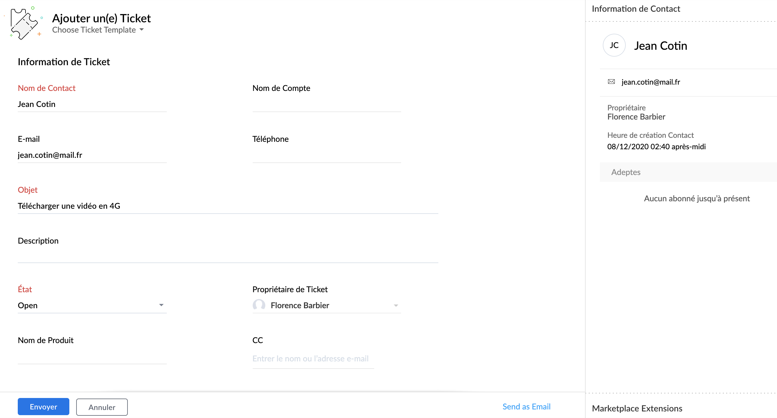 Bonjour à tous, Voici les différents champs qu'il est possible de renseigner quand un ticket est créé. Généralement les tickets comportent le nom du client, le mail, l'objet et une description de sa requête. En plus de ces critères, les clients ...