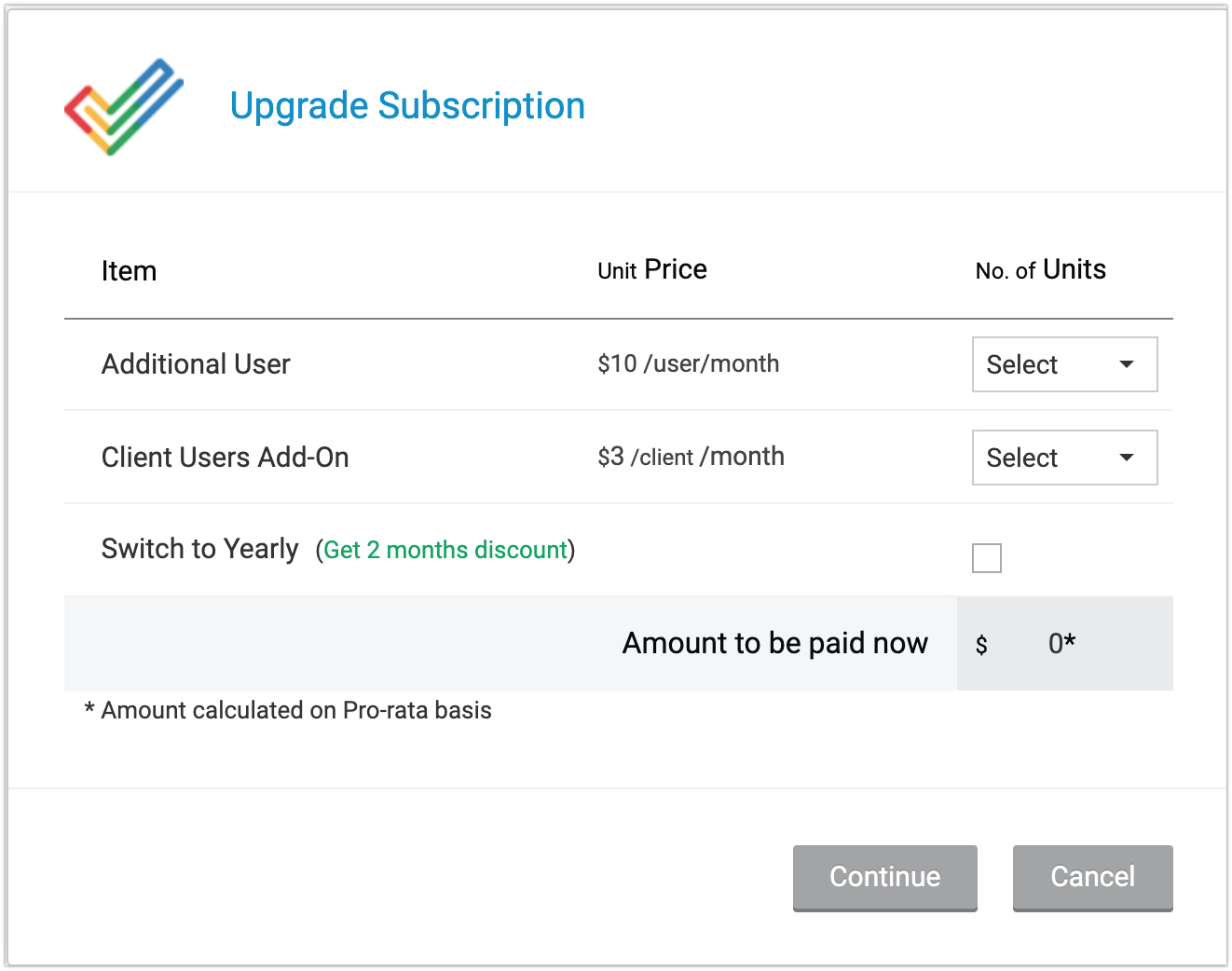 - Sélectionnez le nombre d'utilisateurs, puis cliquez sur Continuer. Pour terminer le processus, cliquez sur Effectuer le paiement.