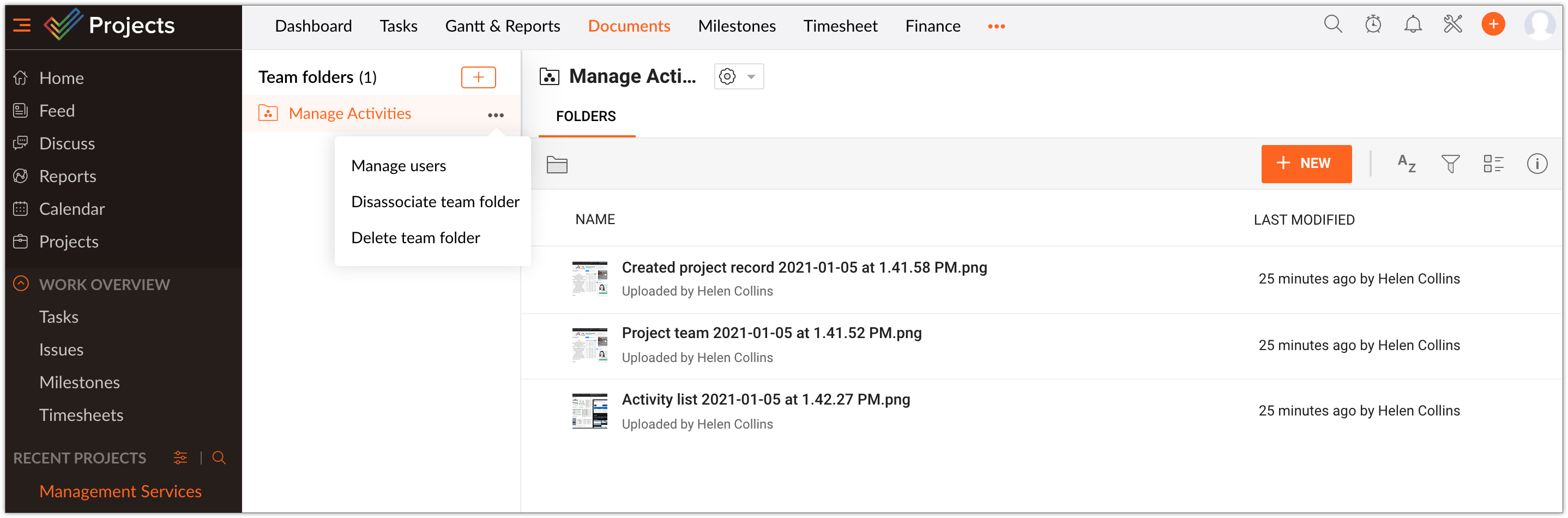 Intégrez Zoho WorkDrive à Zoho Projects pour collaborer avec vos collègues et gérer les fichiers ensemble dans un espace sécurisé.
