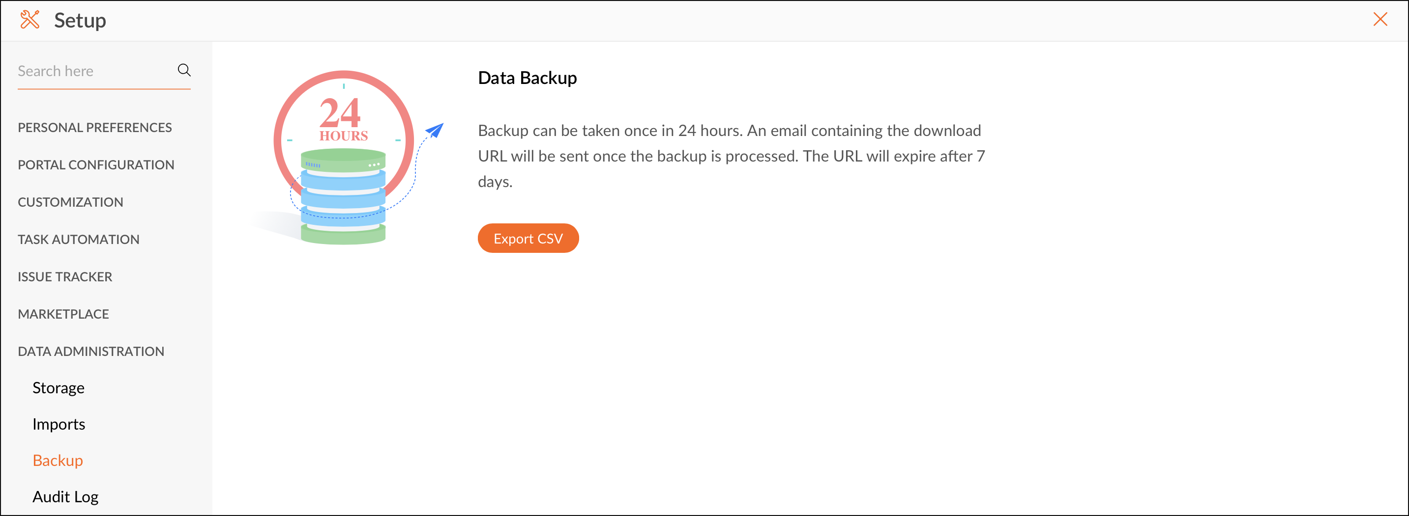 La sauvegarde des données vous permet de faire une copie personnelle de l'intégralité de votre portail et de la conserver pour une utilisation future. Un planificateur déclenchera votre sauvegarde et le processus prendra quelques minutes. Un e-mail contenant le lien vers un fichier ZIP sera envoyé au propriétaire du portail.