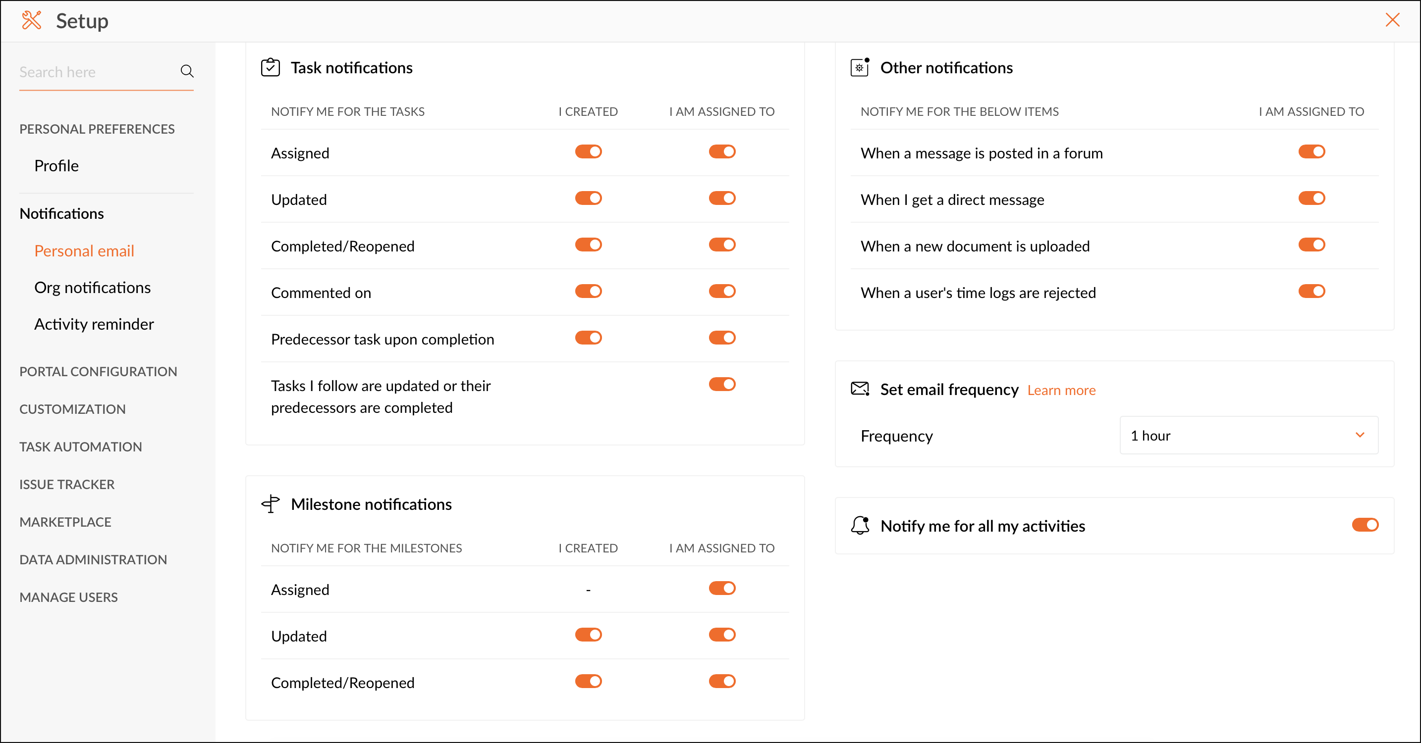 Configurez vos notifications par e-mail pour les tâches en attente et non attribuées à partir de vos paramètres personnels.