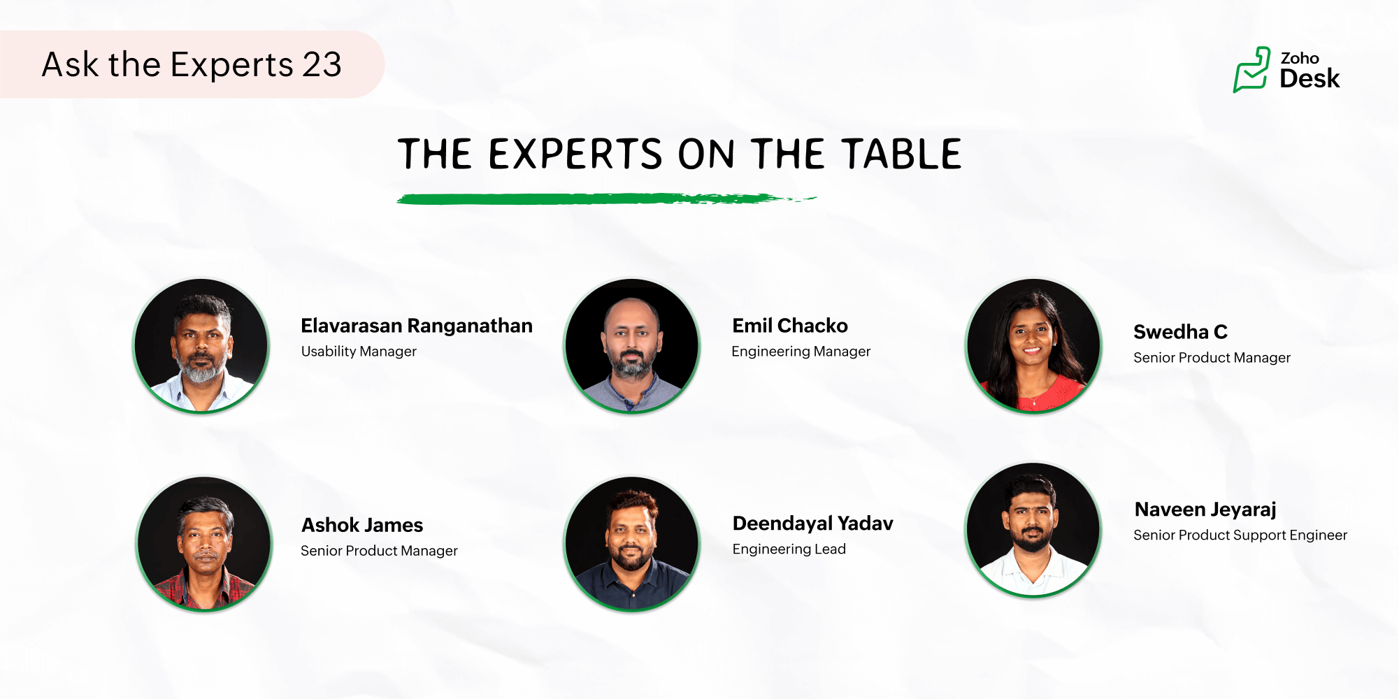 This month's panelists have rich experience and are the brains behind customization and personalization in Zoho Desk. Bring your questions and use cases to get answers during the live session. We're looking forward to finding new ways to elevate your customer support experience.