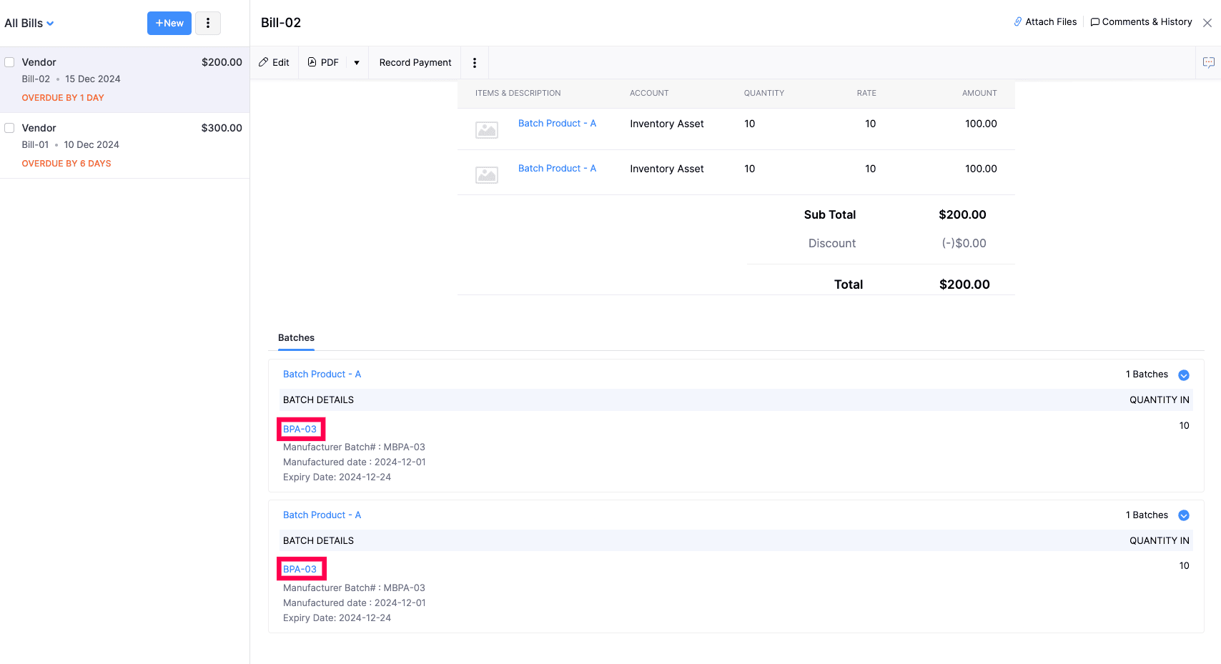 You can now associate the same batch in various line items of a purchase transaction. With this option, you can precisely monitor your inventory.