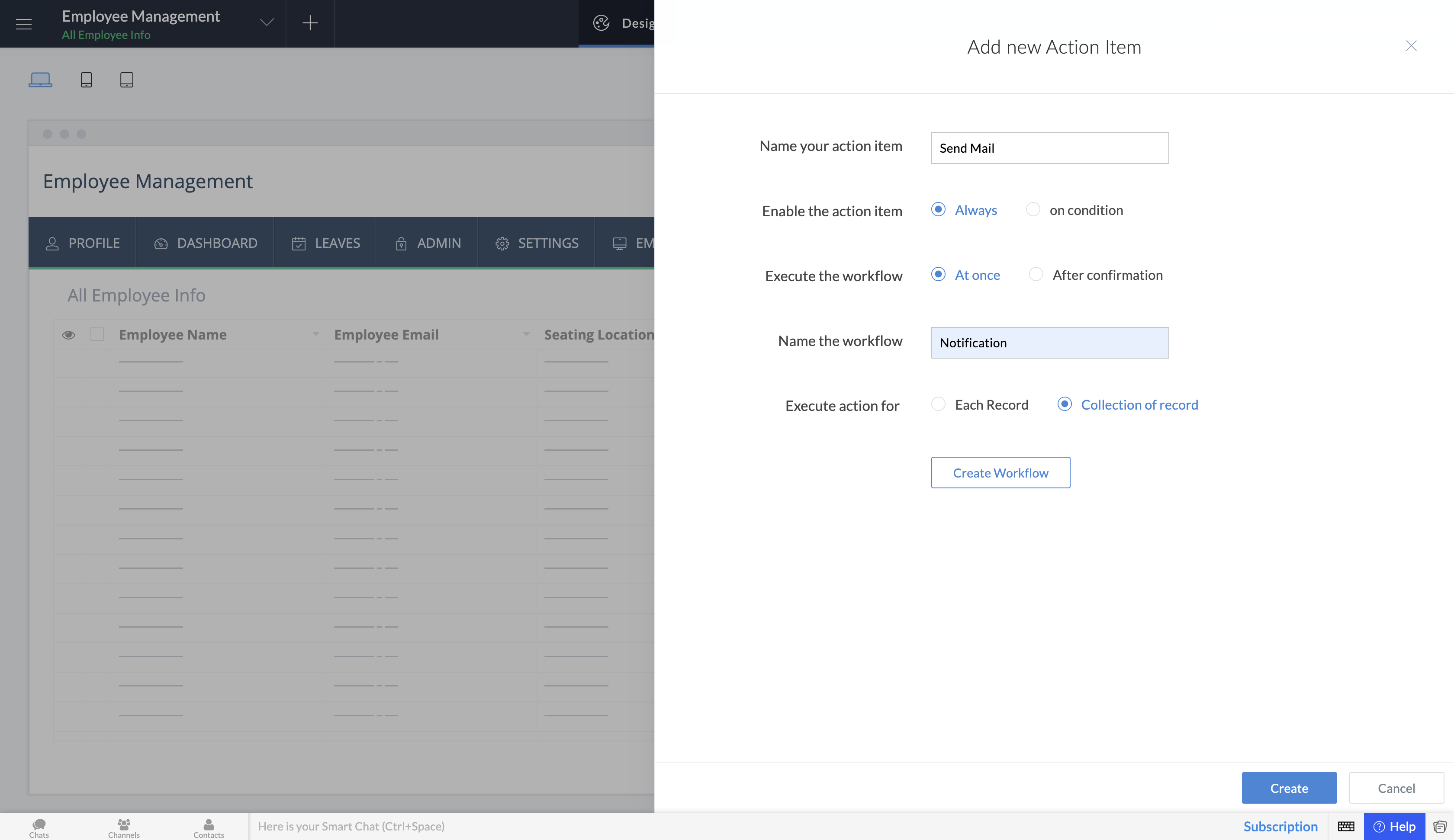 In an employee management app, the HR needs to send a mail on a button-click to all employees regarding a mandatory training session.