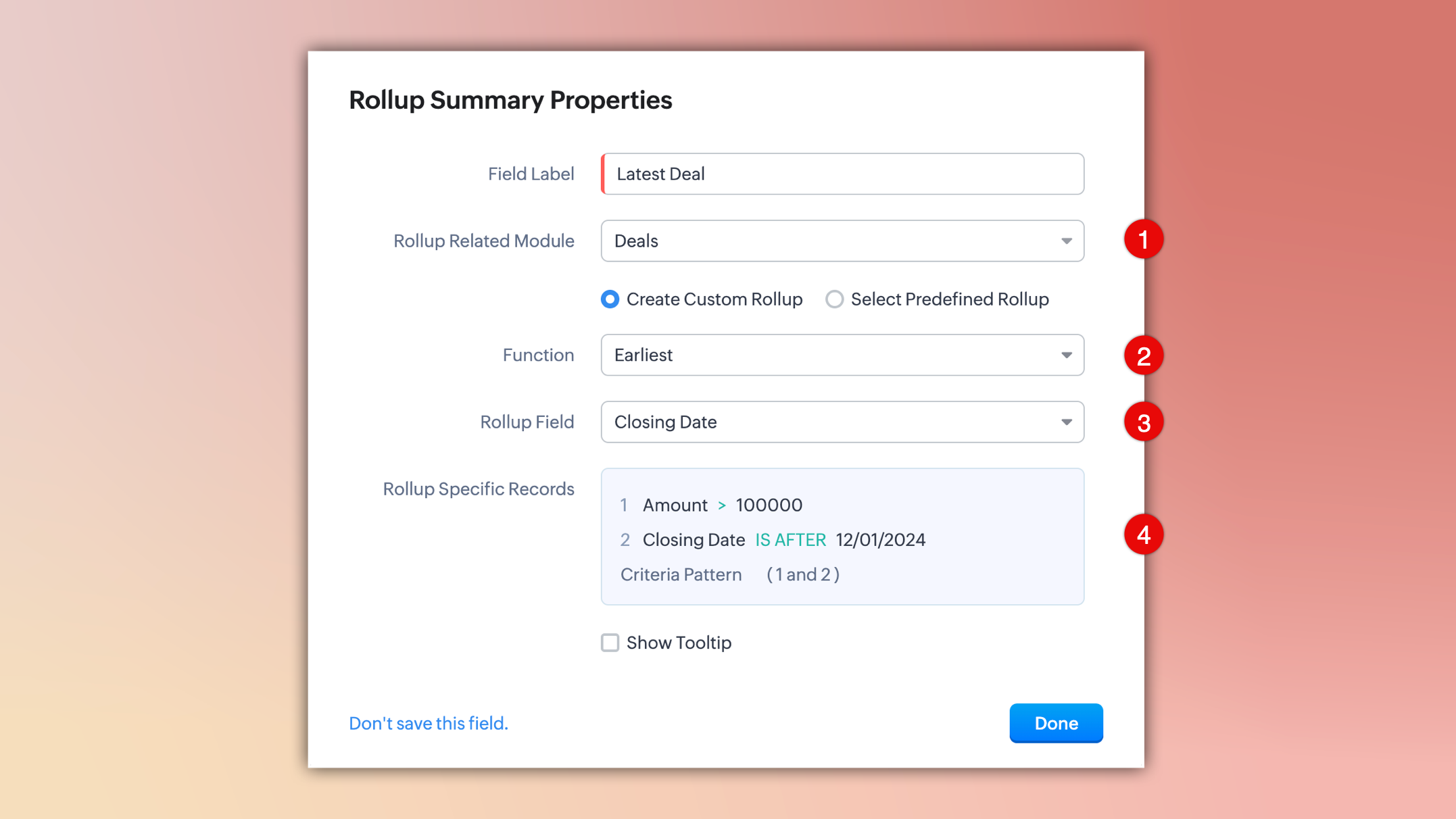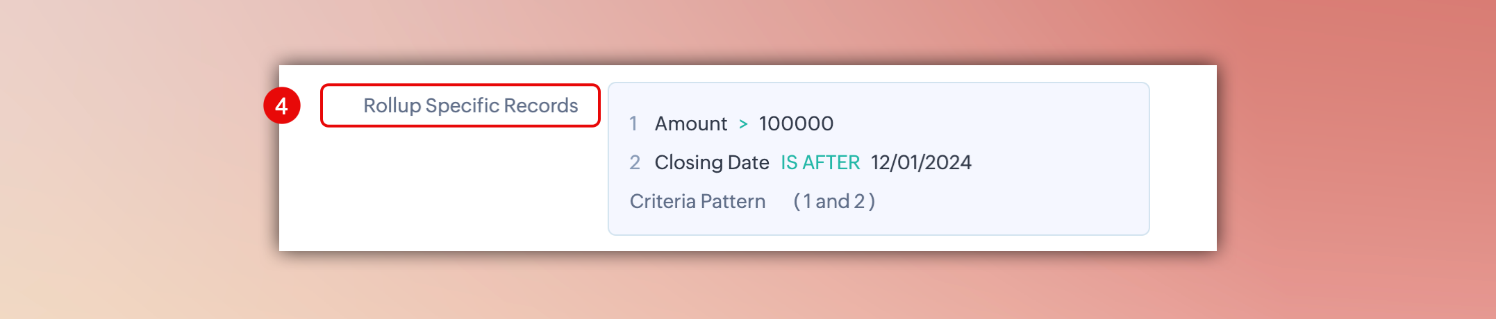 - Additional criteria: You can add criteria to your rollup field to filter and aggregate only the most relevant data for your business needs.