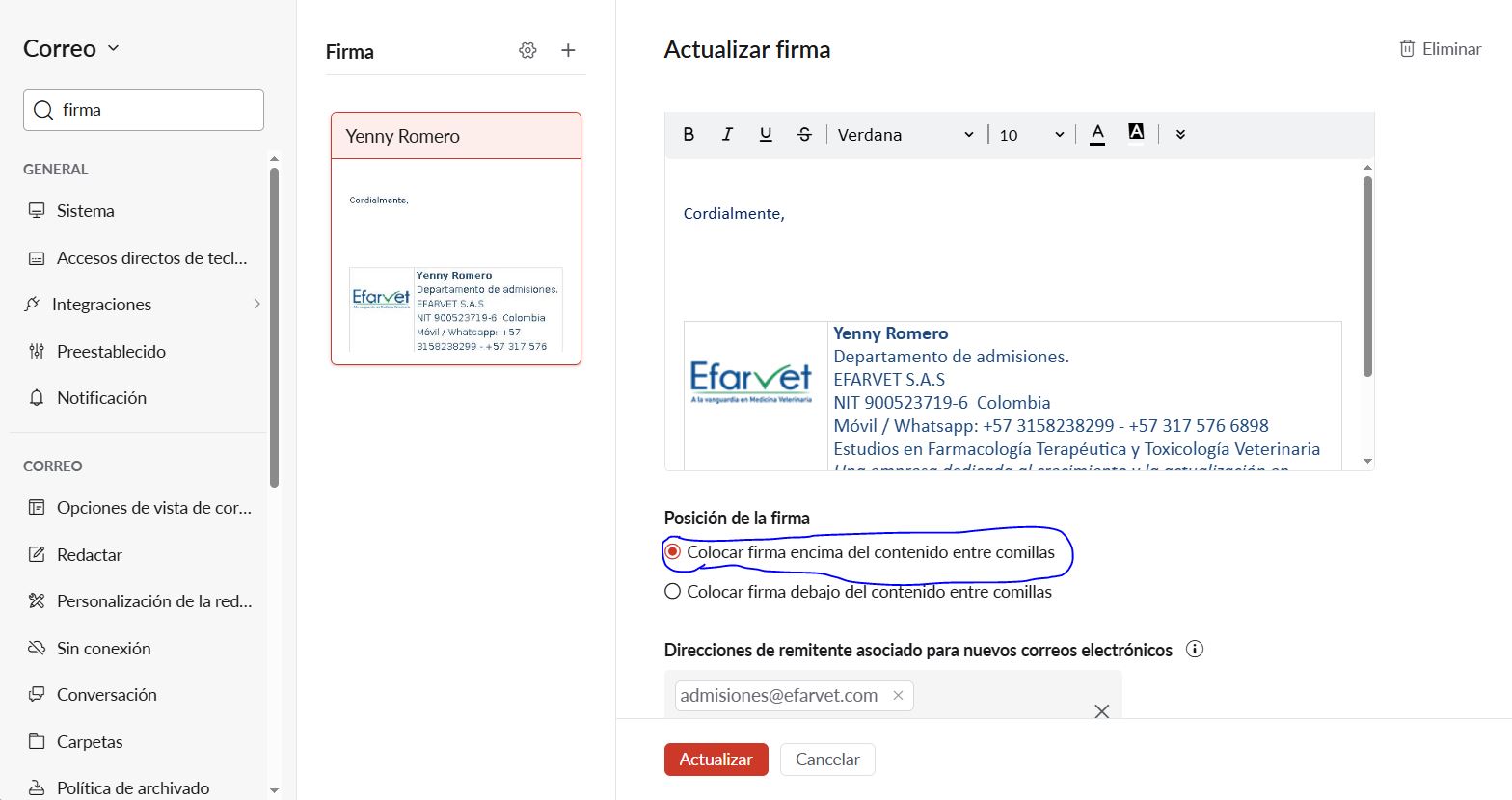Problem: The signature does not appear when replying or forwarding an email. solve issue: settintgs/Signature Check option place a signature above the content with quotation marks