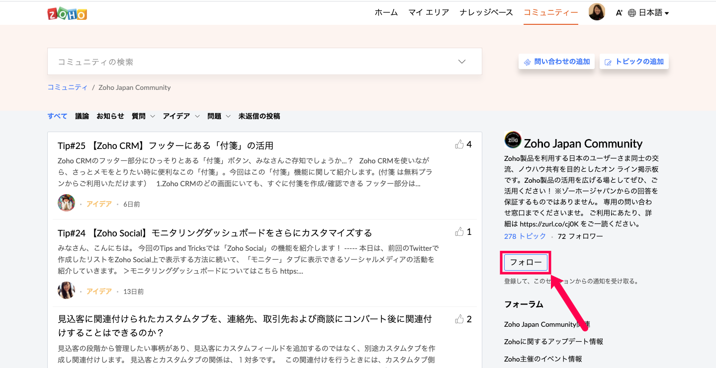 Zoho Japan Communityのオンラインフォーラムのフォローをぜひ、よろしくお願いします!