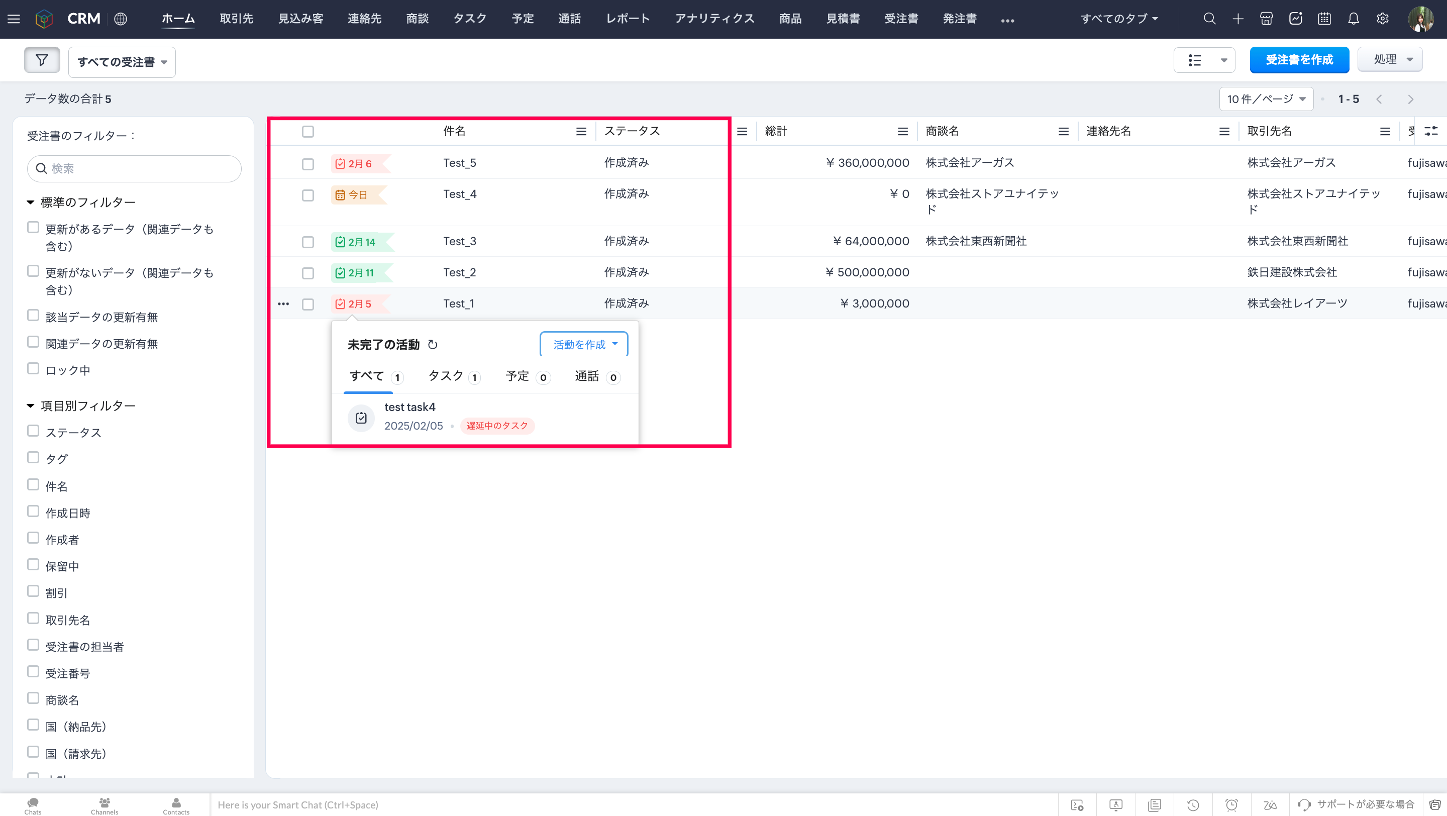 これまでは、タブの一覧表示でフィルターを利用してデータを確認したい場合、画面左側に設置されているフィルターパネルから設定する必要がありました。