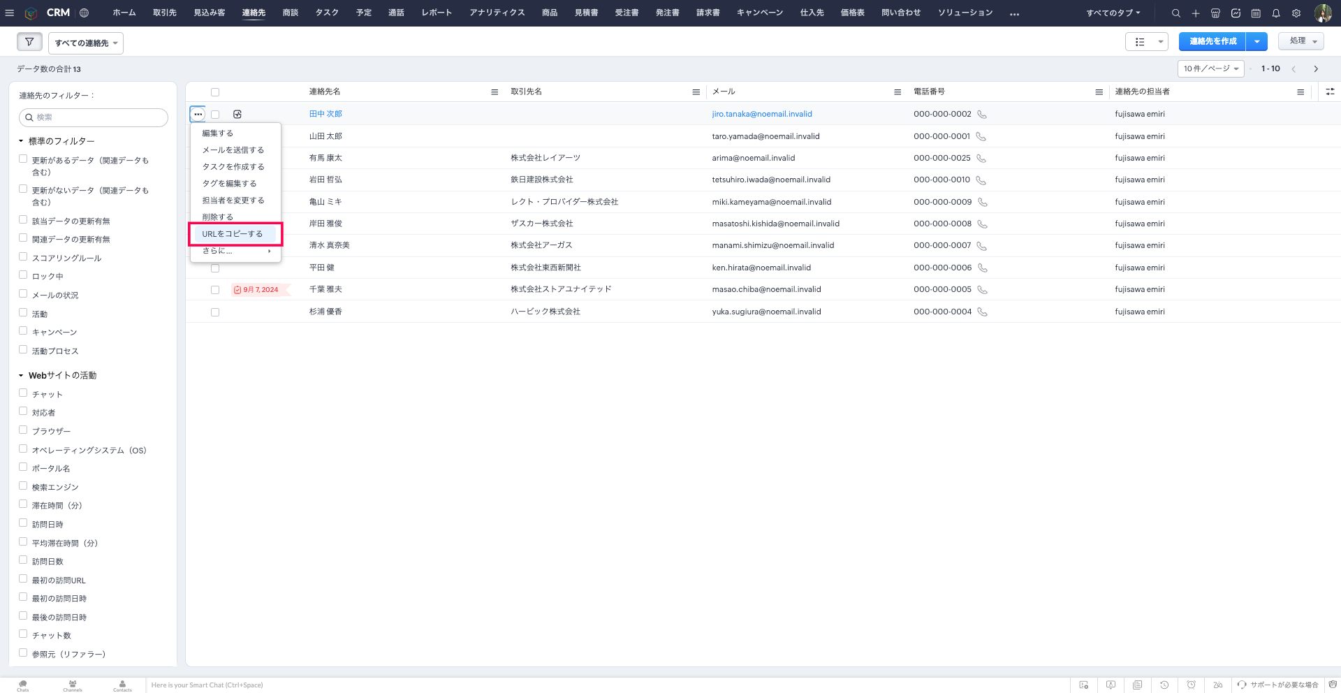 各データ行の「その他の設定」(…)に「URLをコピーする」オプションが追加され、ユーザーが簡単にデータのURLをコピーできるようになりました。