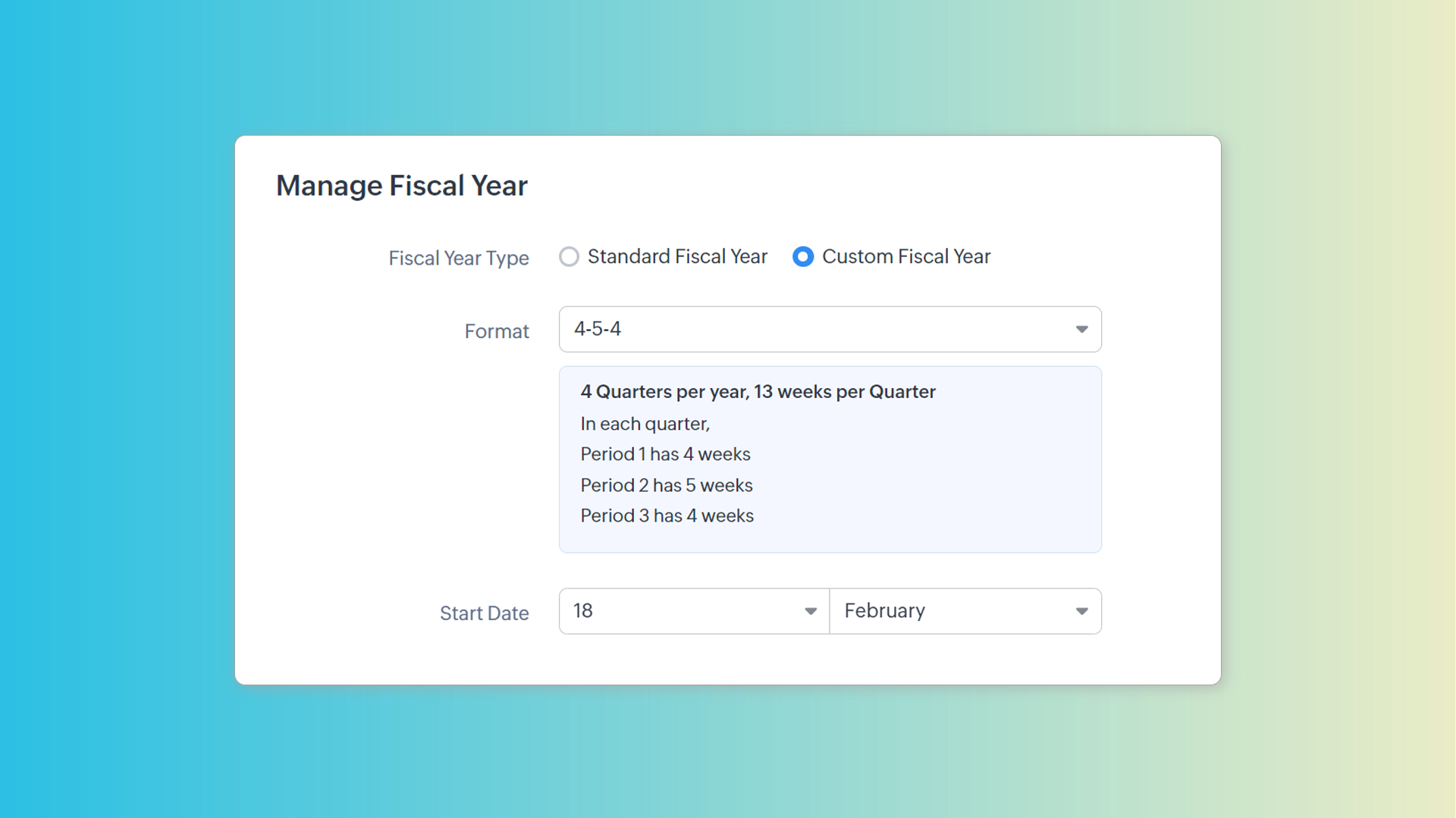 You can now set your CRM's fiscal year to follow the 4-5-4 calendar and other widely used 52-week fiscal year formats.