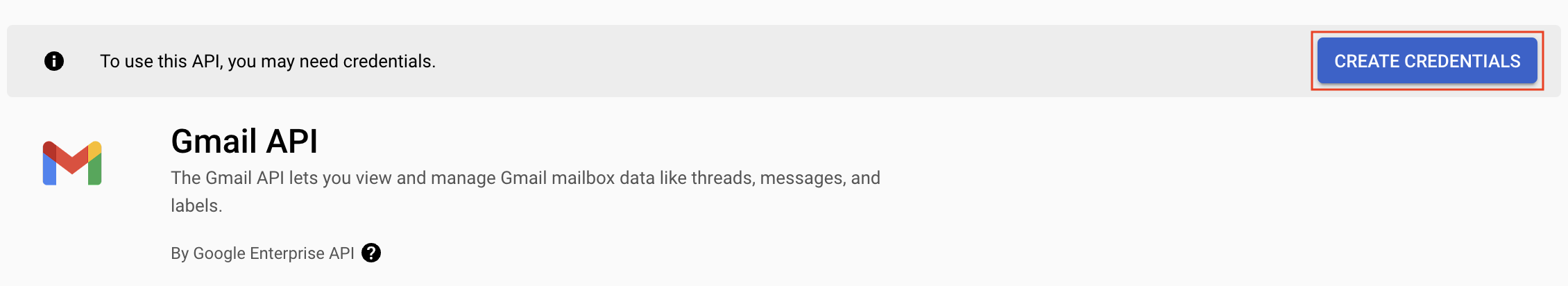 - Next, click Enable on the Gmail API product details page.