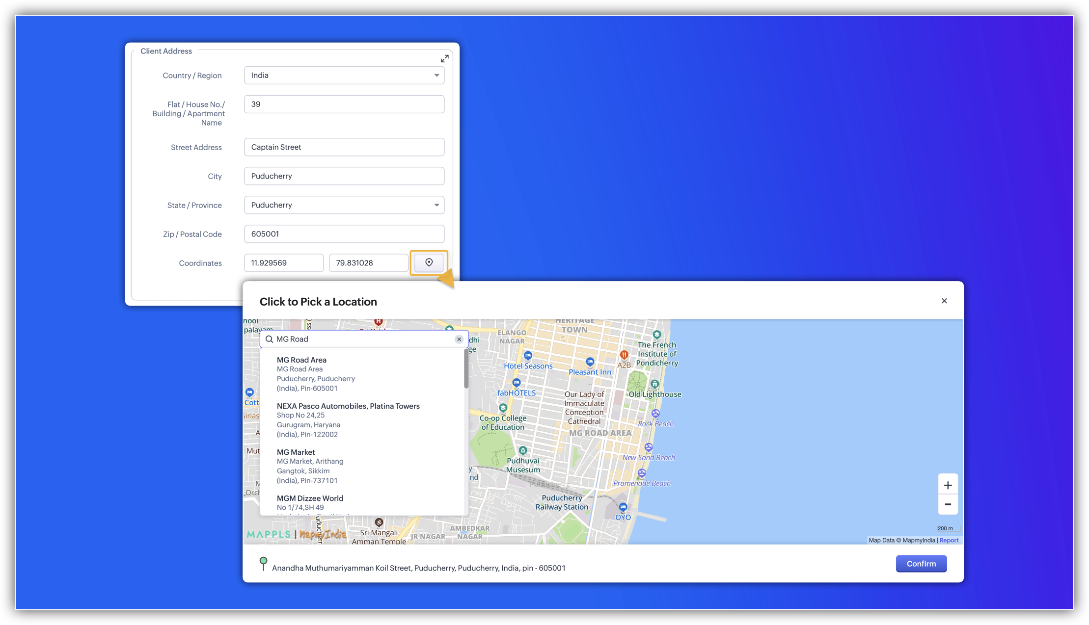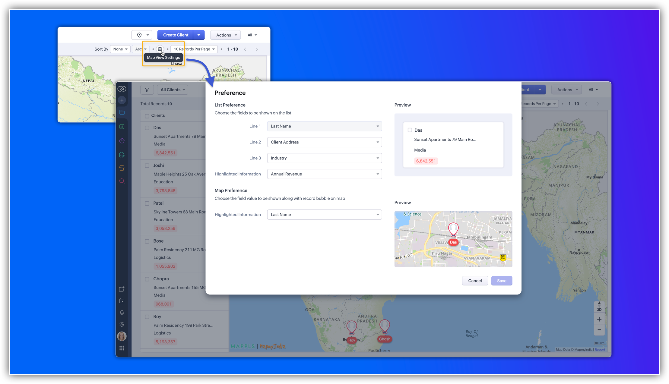 Built on top of the all-new address field and powered by Mappls (MapMyIndia), the Map View turns your records into an interactive map for smarter planning, faster visits, and better field execution.